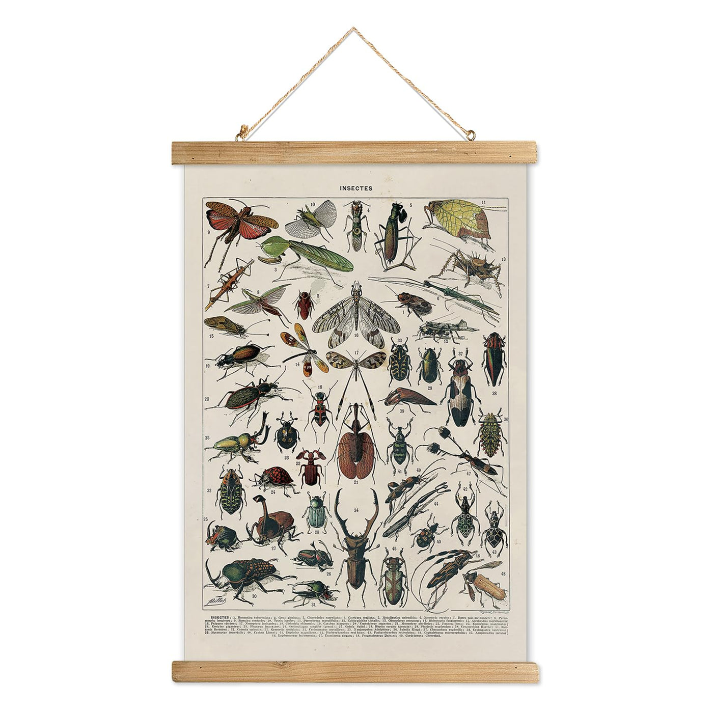 - Q: What type of insect species are illustrated on the poster? A: The poster features a wide array of intricately detailed illustrations of various insect species, providing a comprehensive overview of entomology.