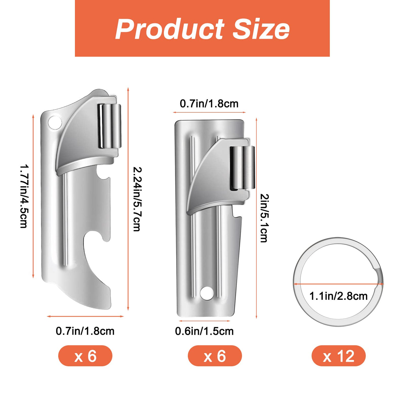 - Q: How many can openers are included in the package? A: Each package includes 12 can openers and 12 key rings.