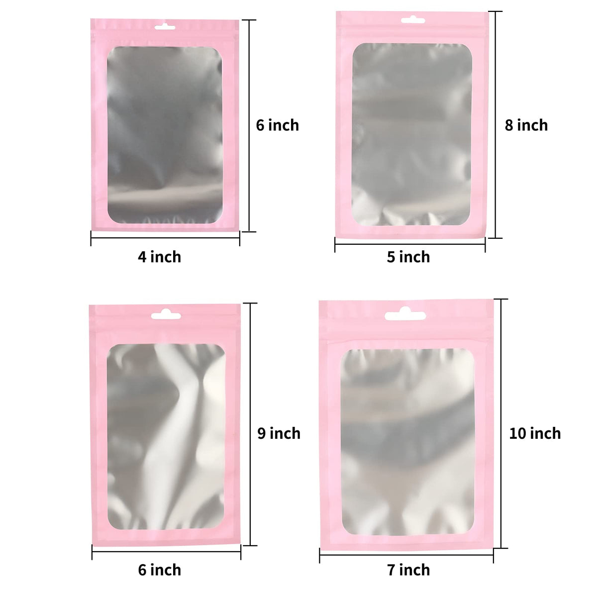 120 PCS 7x10 Smell Proof Mylar Bags for Food Storage Resealable Large Mylar Bags for Kitchen Organization with Clear Window pink Ziplock Packaging Bag for Candy Cookies and Small Jewelry