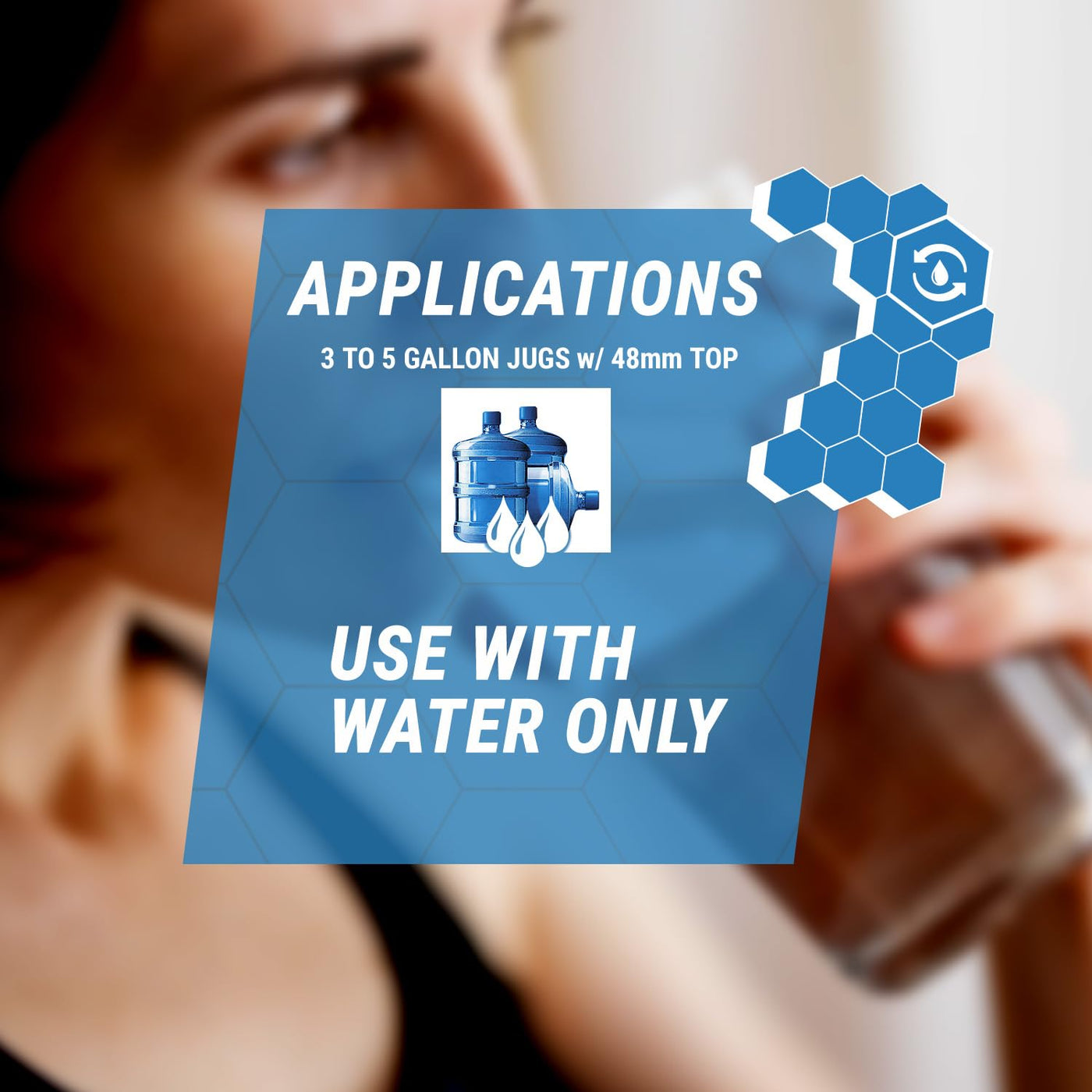- Q: What sizes of bottles are compatible with the TRRWC02 Reusable No-Splash Cap? A: The TRRWC02 Reusable No-Splash Cap is designed to fit 2-gallon to 6-gallon bottles that have a 48mm screw top. It is not compatible with 53mm or most crown top bottles.