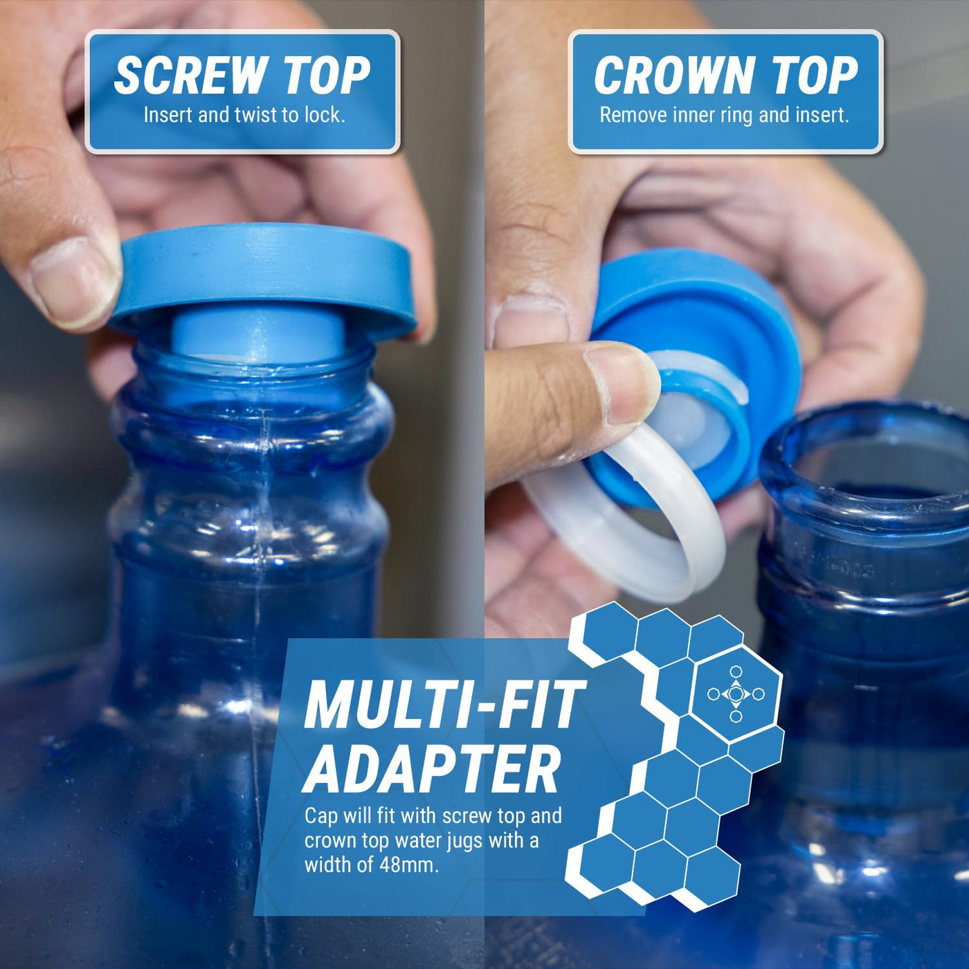 2Pk - Trrwc02 Reusable No-Splash Cap For 48Mm Screw Top/Snap On Crown Top (Needs To Remove Inside White Ring) 3 & 5 Gallon Bottl