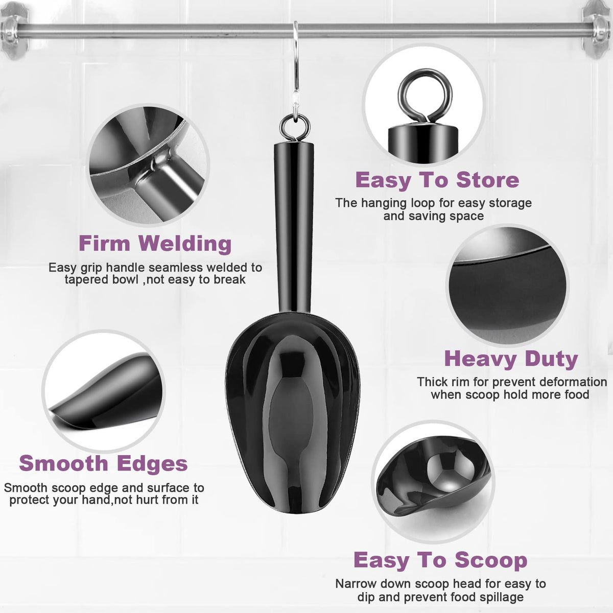 - Q: Is there a hanging loop for storage? A: Yes, each scoop features a small loop on the handle for easy storage on a pothook, helping to save space.