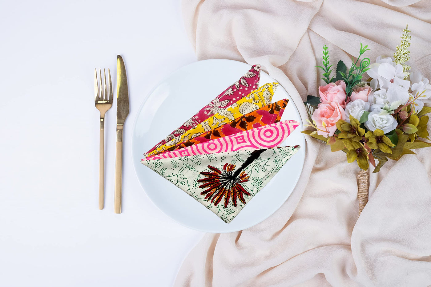 • Q: Will the napkins look the same after washing? A: Due to the hand-block printing process, there may be natural variations in dye and pattern, making each piece unique.