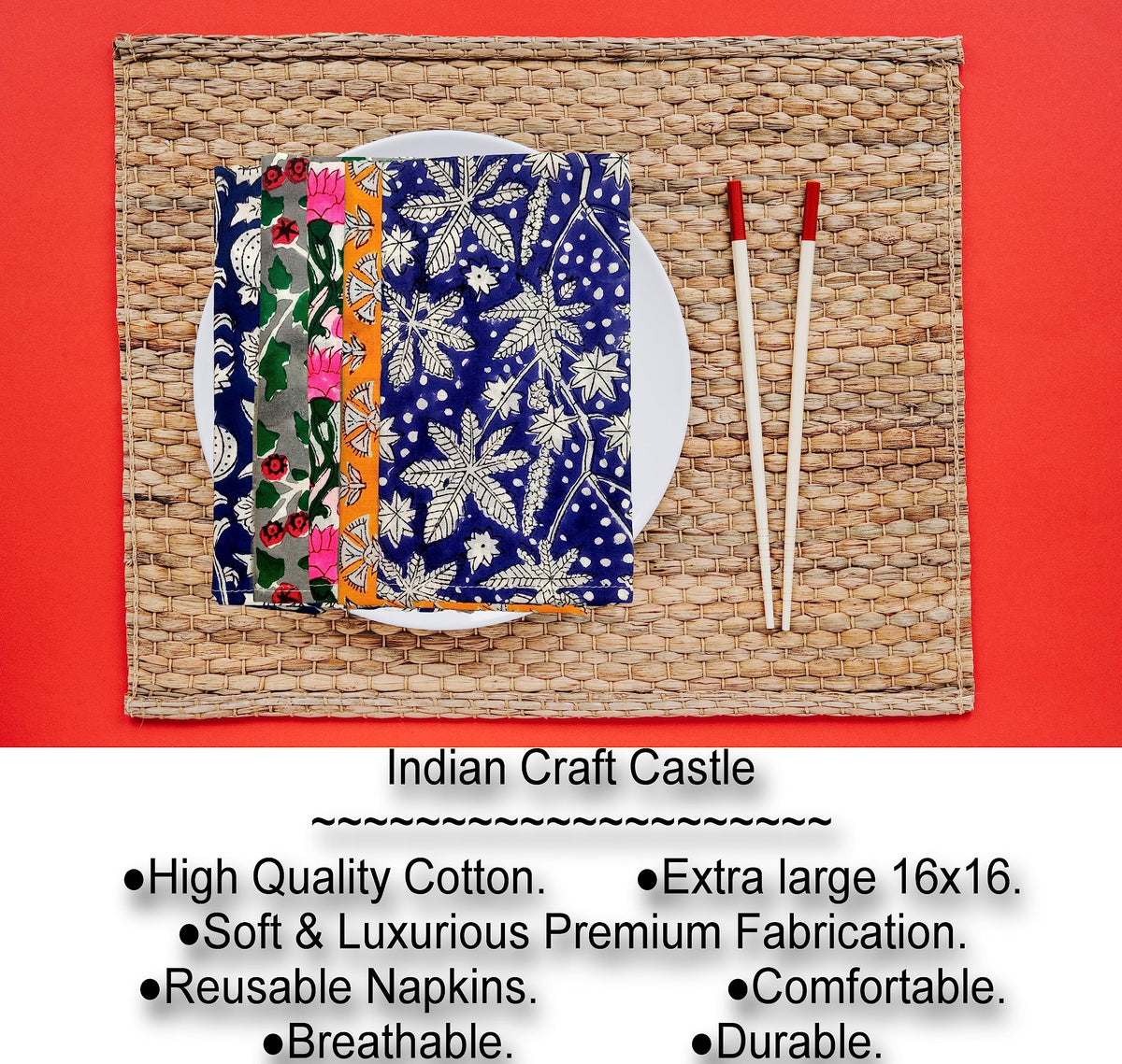 6 Pc Cotton Cloth Napkins Hand Block Print Hand Made Size 16X16 Inch Printed Home Decor Indian Eco Friendly Mix Lot Dinner Napki