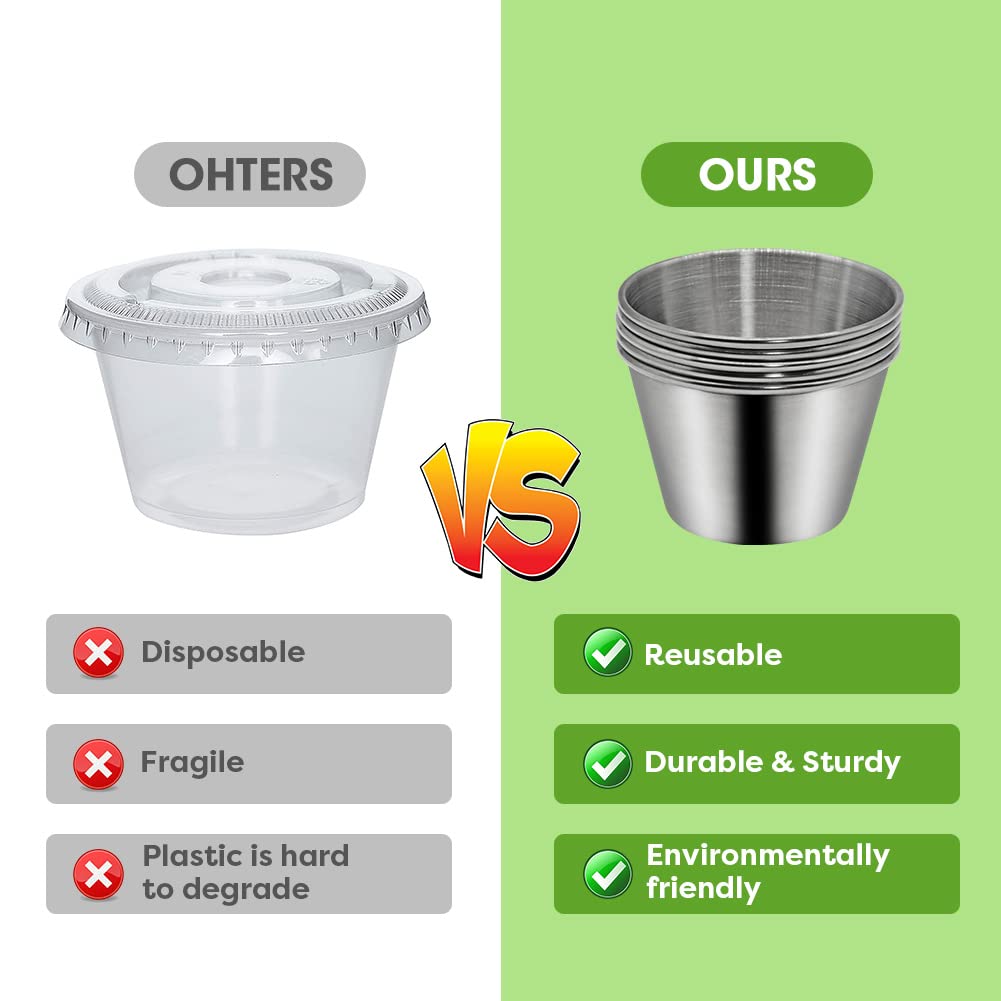 6Pack 2.4oz Small Condiment Containers with Lids Salad Dressing Container To Go Stainless Steel Sauce Silicone Leakproof Reusable Dipping Cups Lids