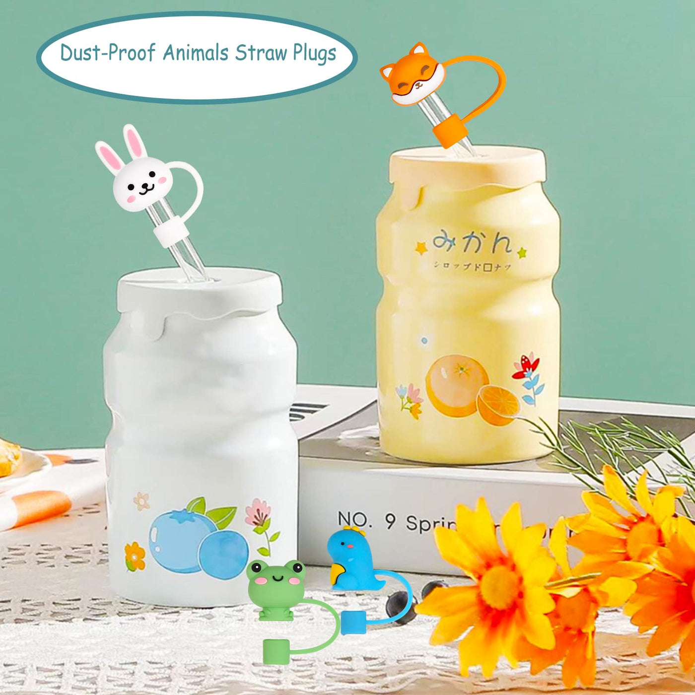 8Pcs Animals Straw Tips Cover Reusable 6Mm Straw Toppers Dust-Proof Straw Protector Cover Plugs For Tumblers Small Straws Portab