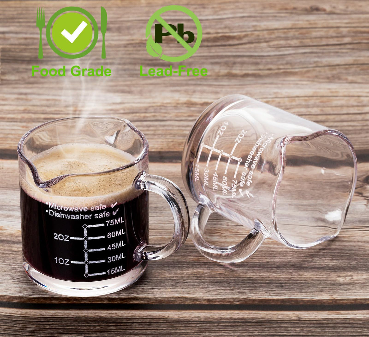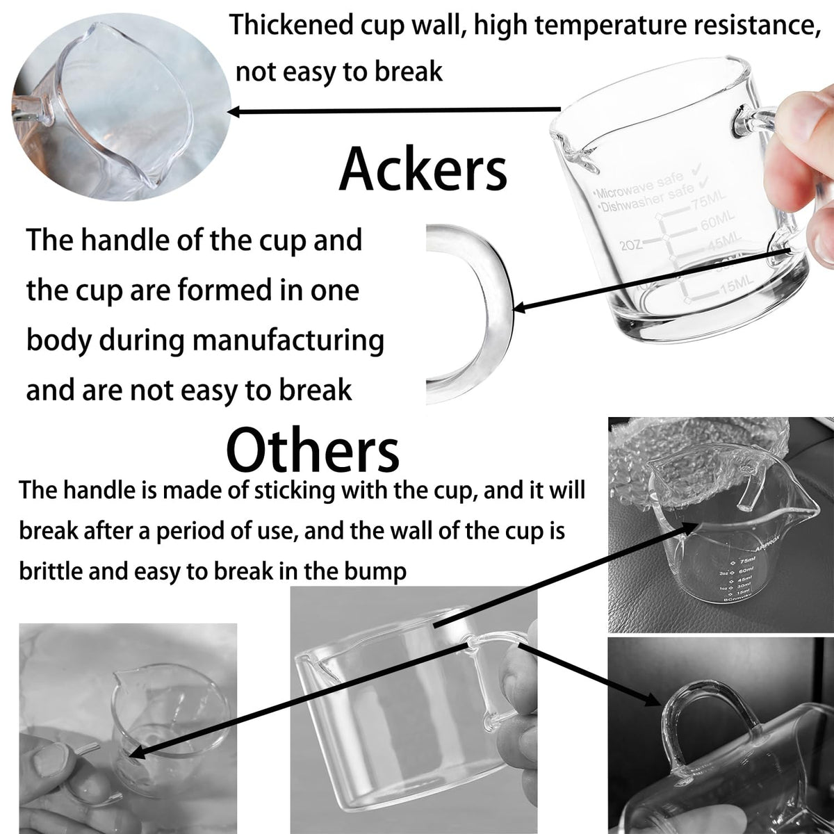 Ackers Etched Scale Espresso Cup With Handle, Thickened Bottom And Wall, Double V-Shaped Spout,2.5Oz Milk Frothing Pitcher,75Ml
