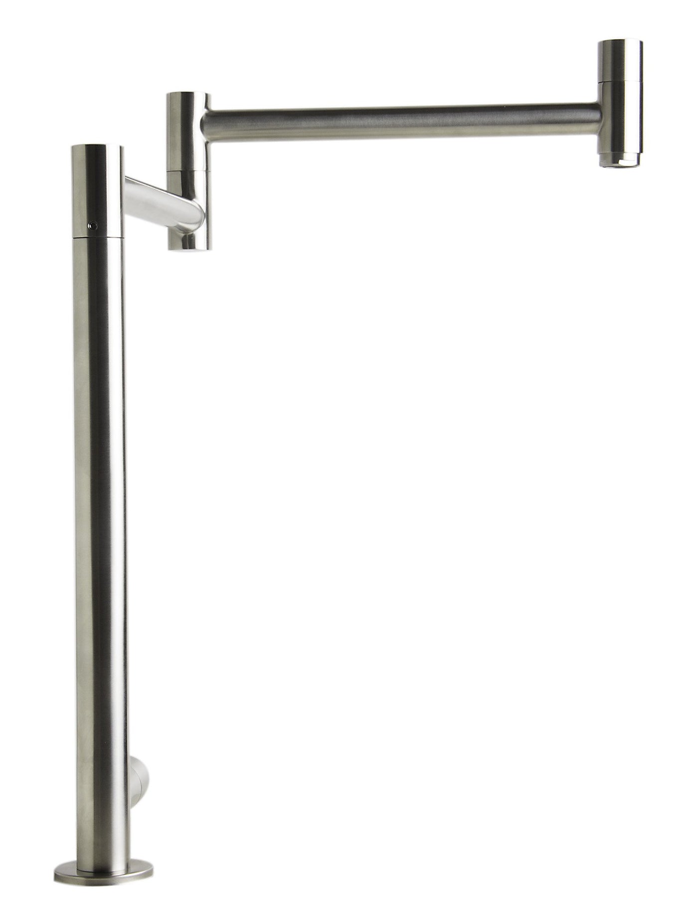 • Q: How does the double jointed design benefit the pot filler? A: The uniquely double jointed design allows the pot filler to have an extra-long reach of up to 20 inches and can fold up against a wall for convenient storage.