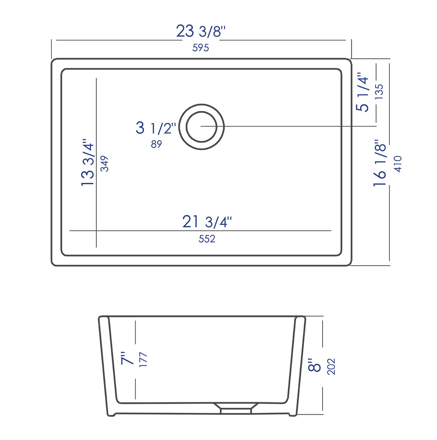 • Q: What are the dimensions of the ALFI brand AB503UM-W sink? A: The inner dimensions of the ALFI brand AB503UM-W sink are 21 and three-quarters inches by 13 and three-quarters inches by 7 inches.
