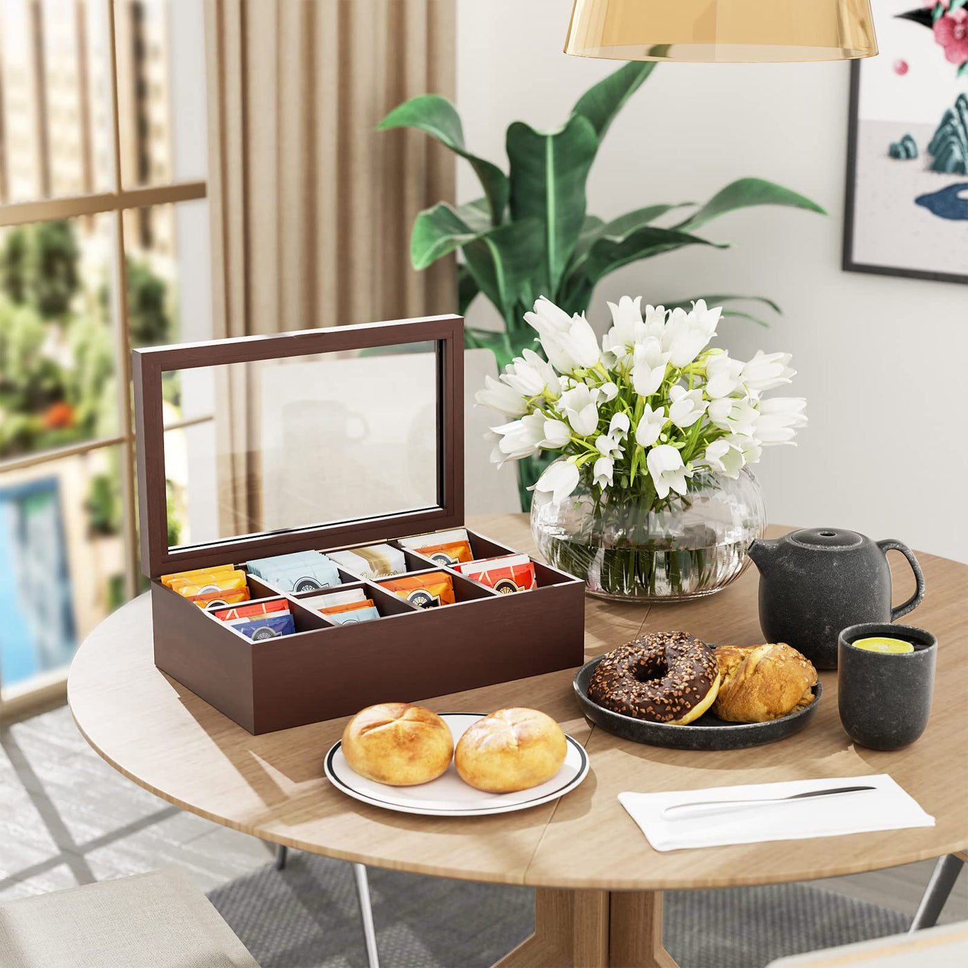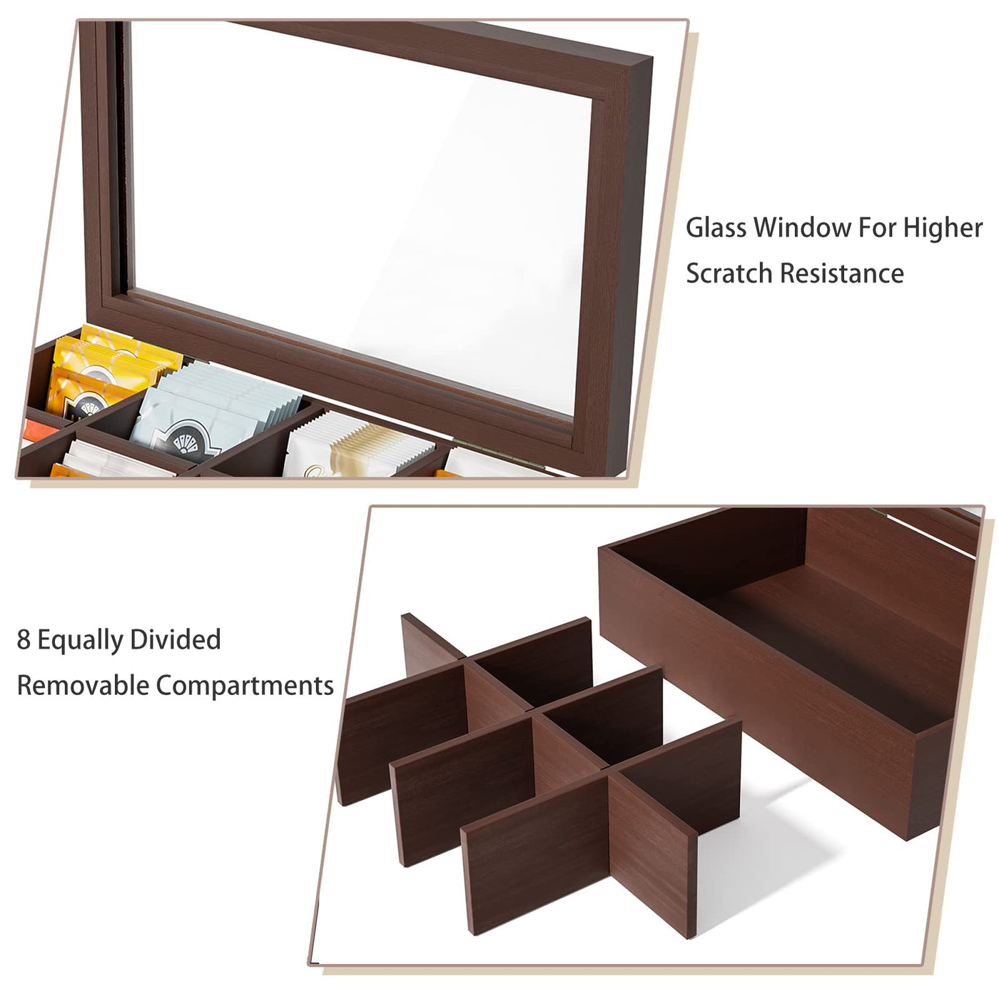 Alsonerbay Wooden Tea Box Tea Bag Holder Kitchen Storage Chest Box For Spice Pouches And Sugar Packets With 8 Compartments And G