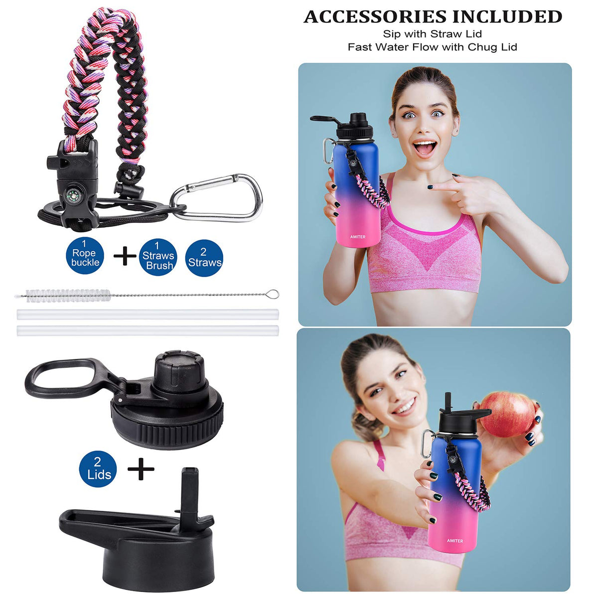• Q: Can I carry the AMITER Water Bottle easily? A: Yes, the AMITER Water Bottle features a humanized paracord handle and includes a carabiner, allowing for five different ways to carry it.