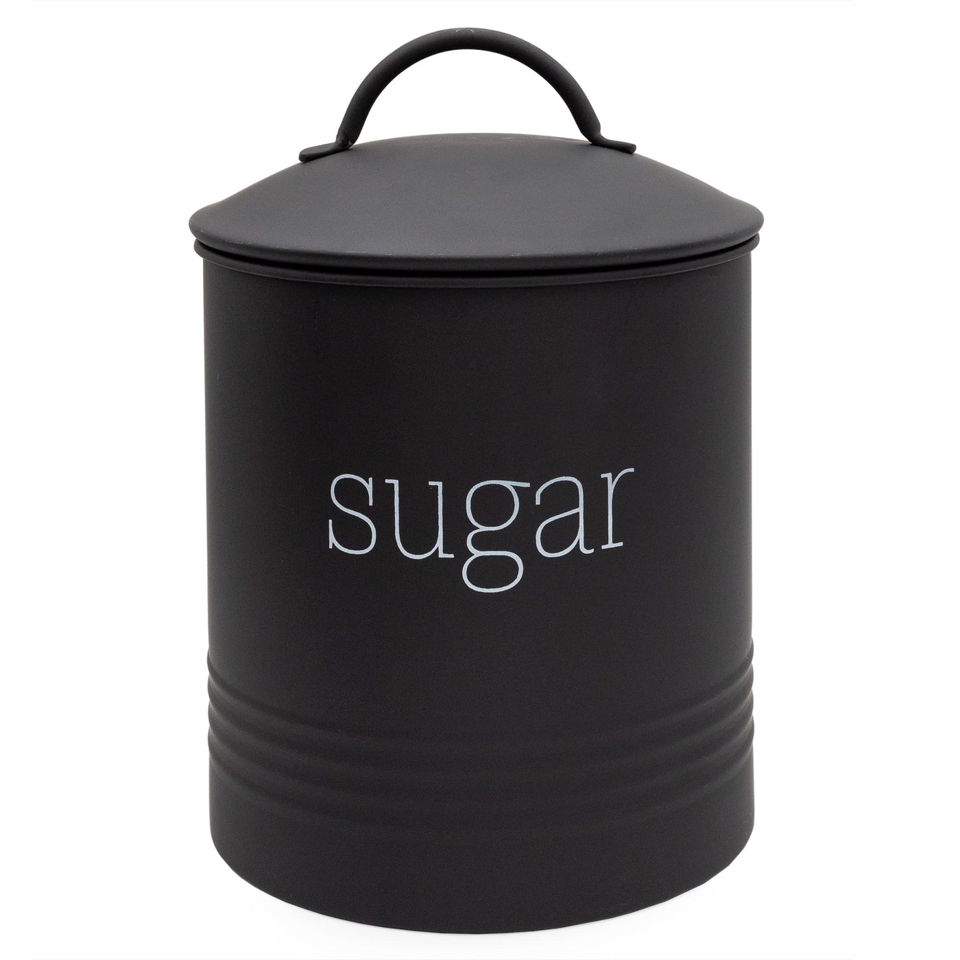 AuldHome Enamelware Black Sugar Canister; Modern Farmhouse Staples Storage for Kitchen