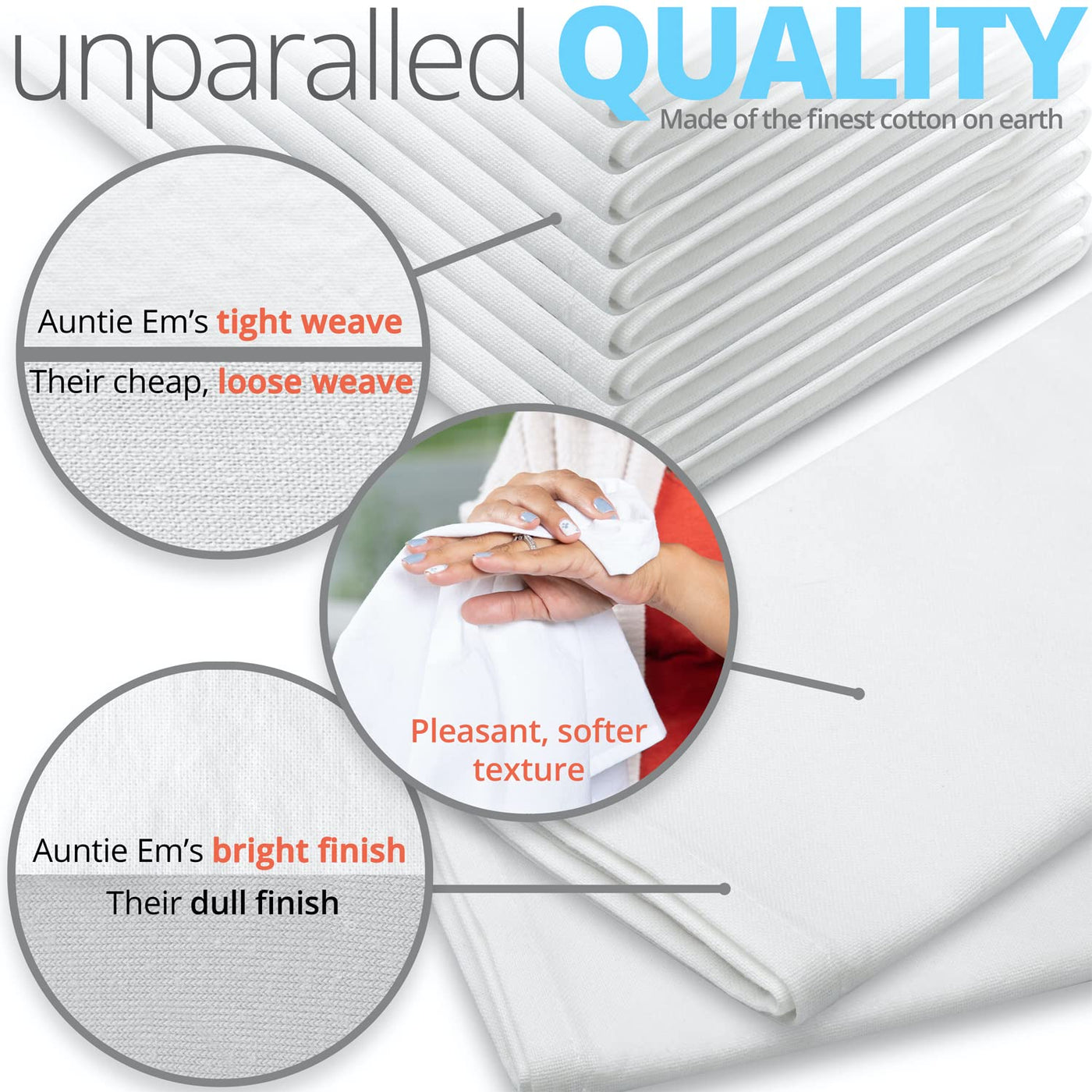 - Q: What is the satisfaction guarantee for these napkins? A: Aunti Em's Kitchen offers a 100% Lifetime Satisfaction Guarantee on these napkins, ensuring customer satisfaction.