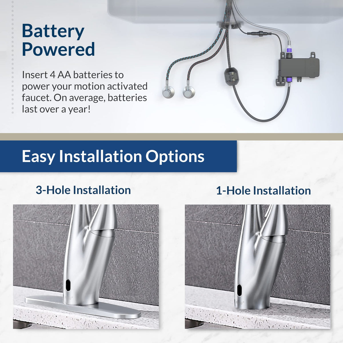 - Q: Does this faucet require batteries? A: Yes, the motion sensor is battery-powered, providing flexibility in installation without the need for hard wiring.