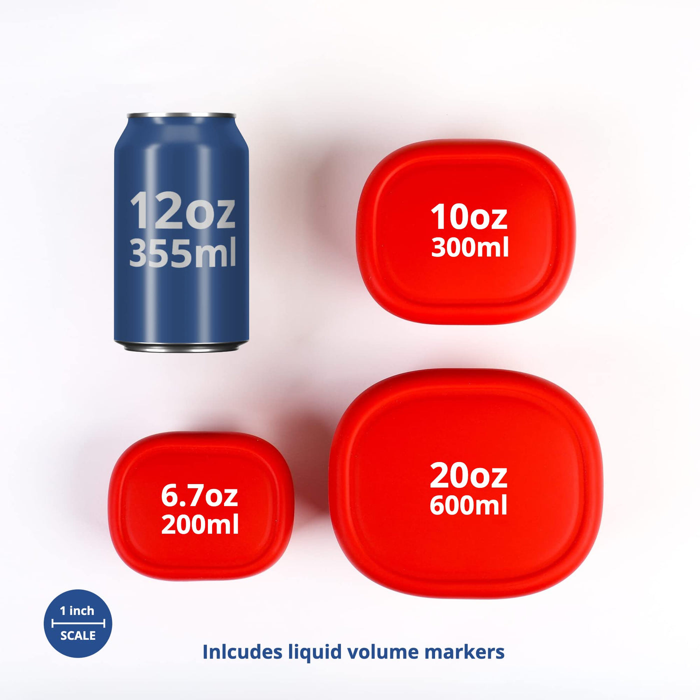 BLUE gINKgO Nesting Silicone containers - Set of 3 Hard-Shell Silicone Food Storage containers BPA Free Airtight Dishwasher and Freezer Safe (67oz 10oz 20oz) - Red