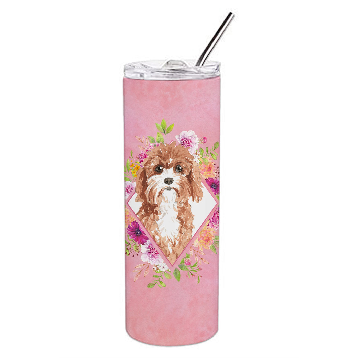 'Caroline's Treasures Cavapoo Pink Flowers Double Walled Stainless Steel 20 oz Skinny travel-insulated-tumblers Multicolor''