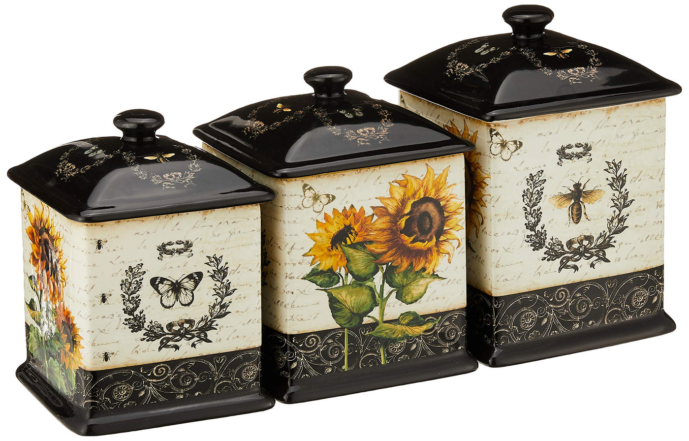 Certified International 3 Piece French Sunflowers Canister Set, 56 Oz/60 Oz/96 Oz, Multicolored