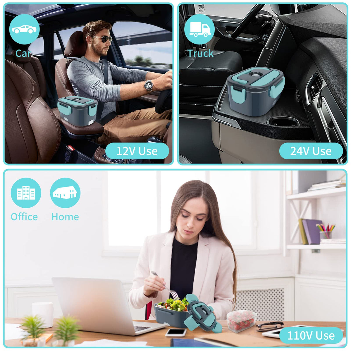 Charmdoo Electric Lunch Box, Food Warmer Heater 12V 24V 110V, 80W Faster Heated Lunch Box For Car/Truck/Home Portable Heating Bo