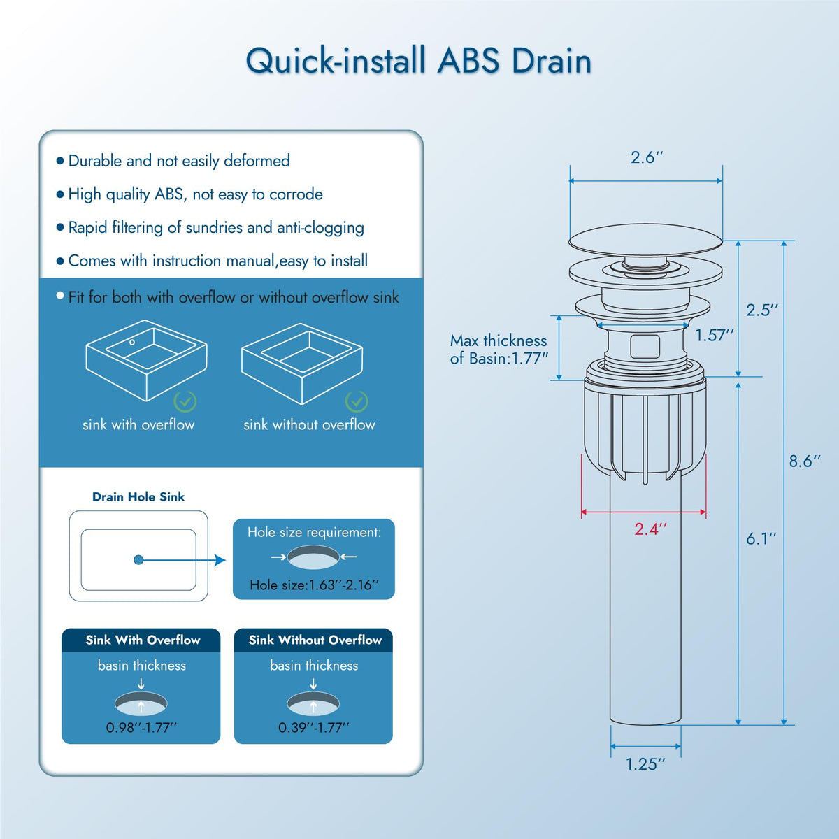 - Q: What is the maximum and minimum counter top thickness for installation? A: The maximum counter top thickness for installation is 1.18 inches, while the minimum thickness is 0.12 inches, or 3 millimeters.