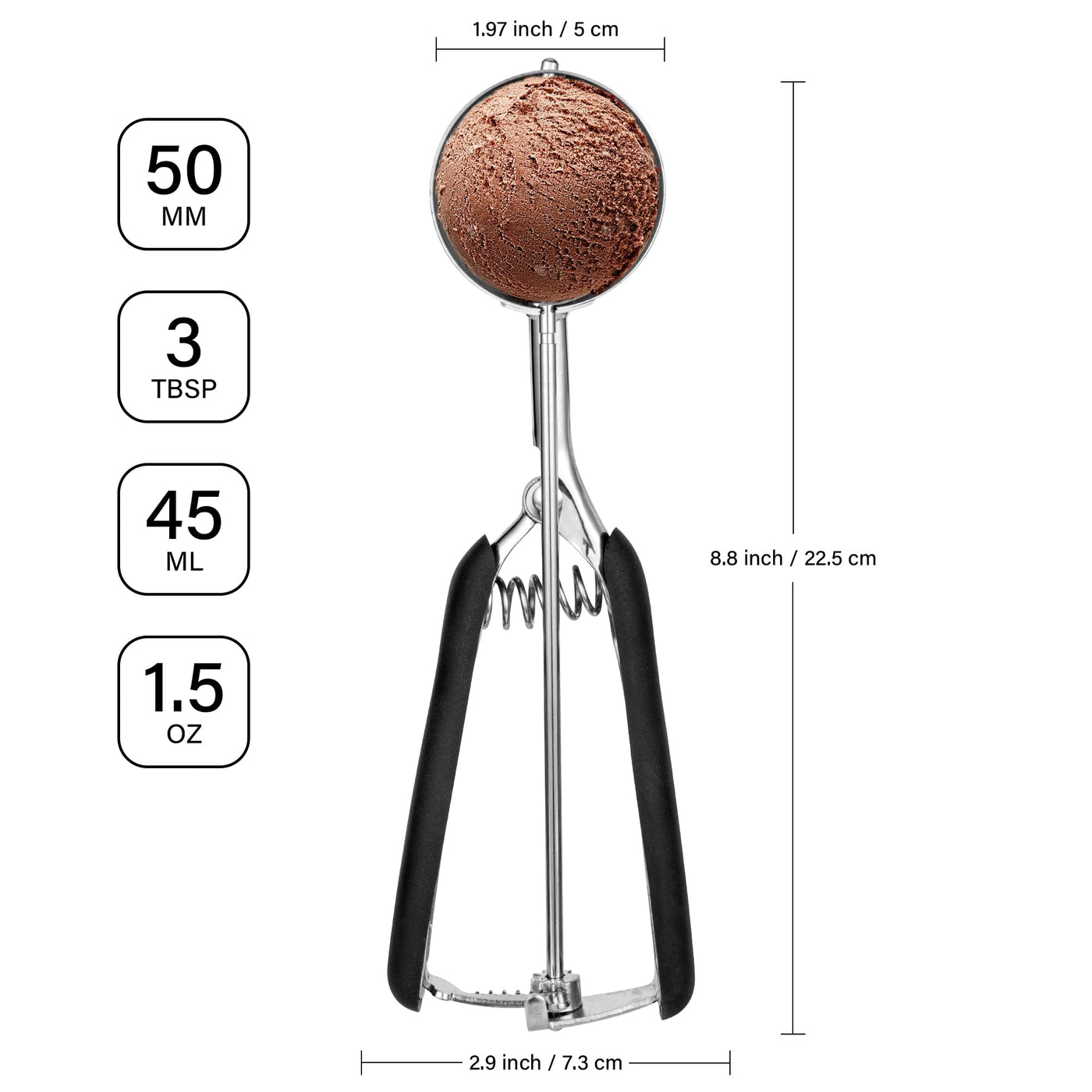 Cookie Scoop 3 Tbsp, Tj Pop Professional Stainless Steel Ice Cream Scoop 50 Mm, Good Soft Grips, Quick Trigger Release, 45 Ml