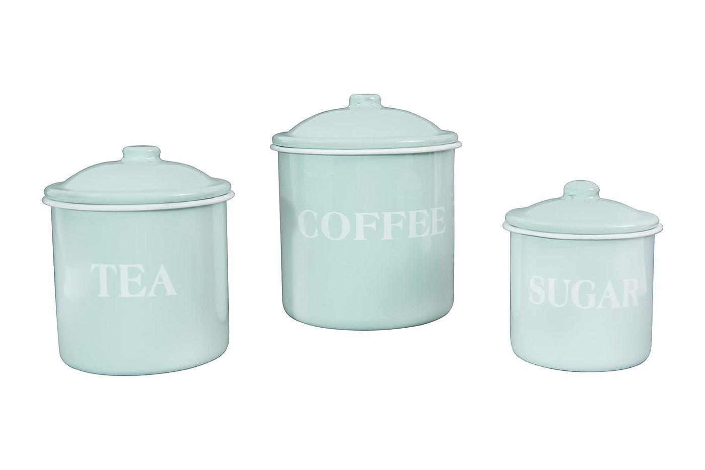 Creative Co-Op Metal Containers With Lids, Coffee, Tea, Sugar (Set Of 3 Sizes/Designs) Food Storage, Mint Green