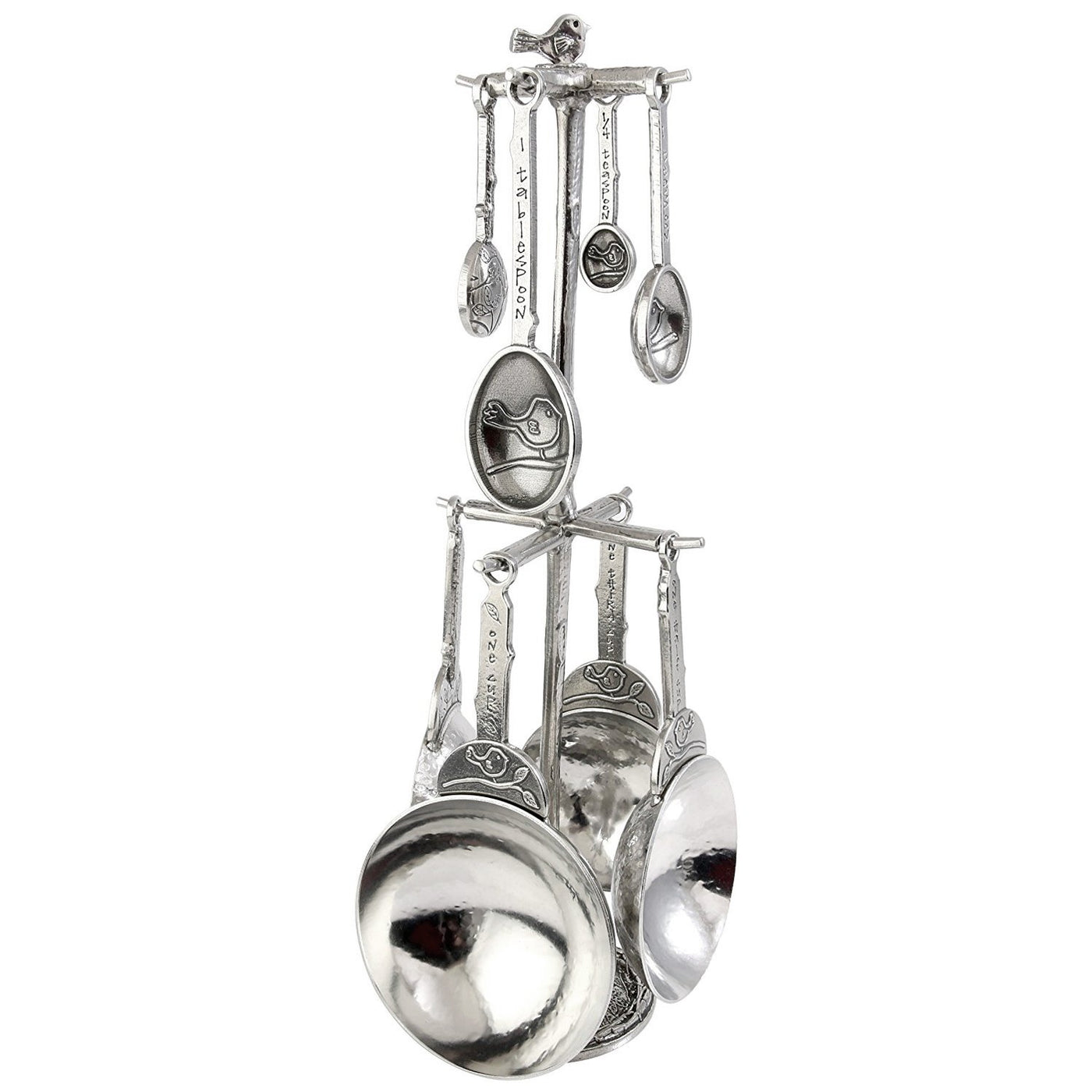 Crosby & Taylor Bird Pewter Measuring Cups And Spoons Super Post Set