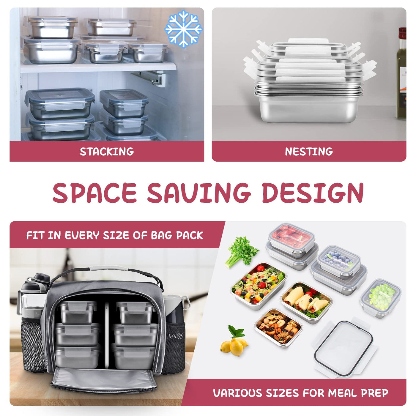 Cykorxicc 10 Pc Square 304 Stainless Steel Food Containers With Lids, Airtight Bento Lunch Box, Metal Meal Prep Food Containers