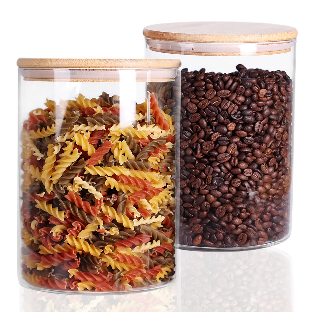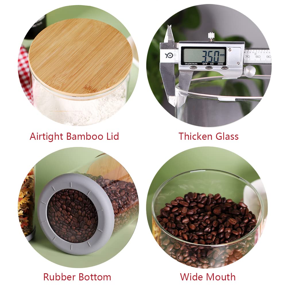 Czfwin Set Of 2 Glass Flour Container With Airtight Bamboo Lid, Large Food Jar With Wooden Lid For Storage Flour, Sugar, Cookies