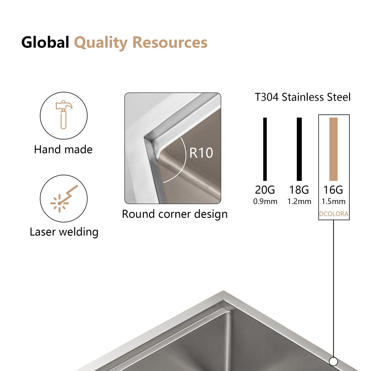 - Q: Is this sink made of stainless steel? A: Yes, the Dcolora sink is made from 16 gauge 304 stainless steel, which is known for its durability and resistance to rust and fading.