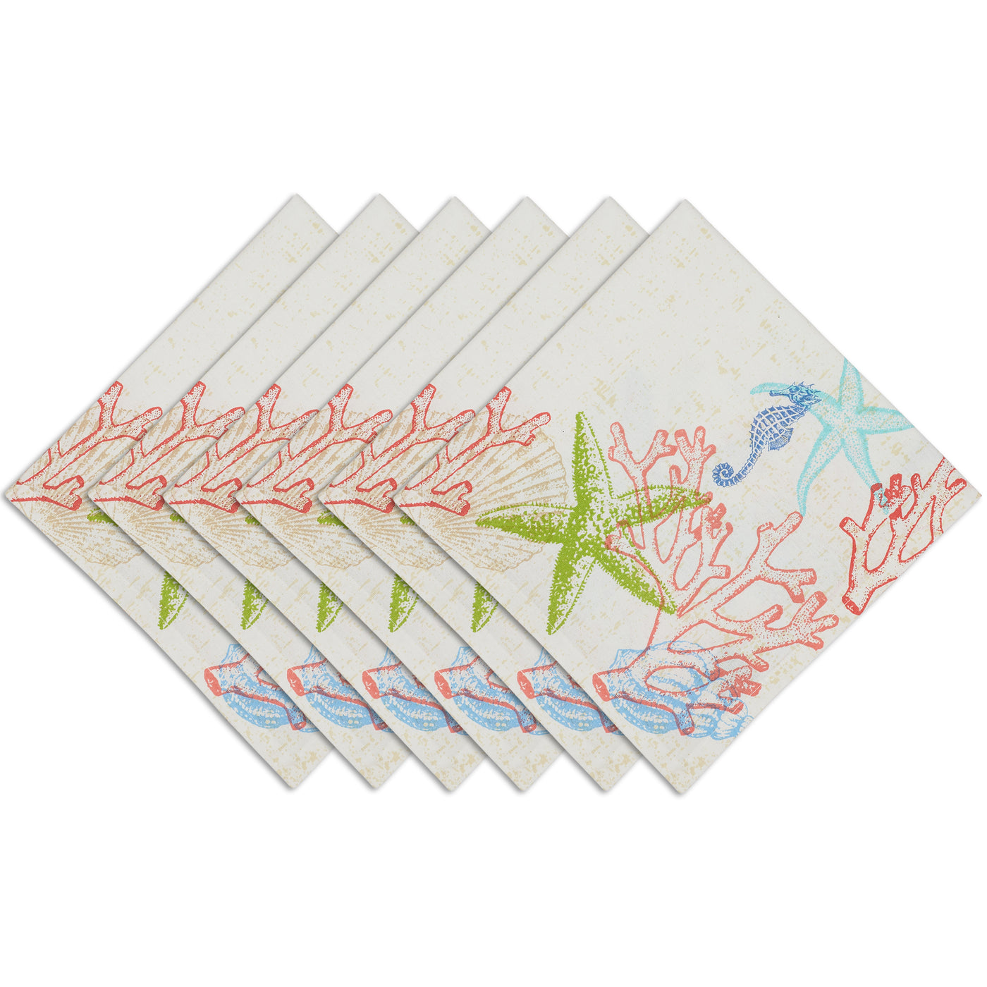 • Q: How many napkins come in a set? A: The DII Seashore Collection napkin set includes a total of 6 napkins.