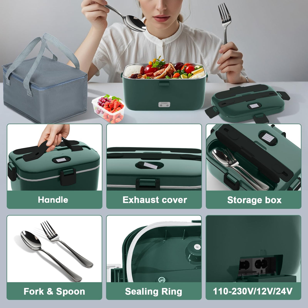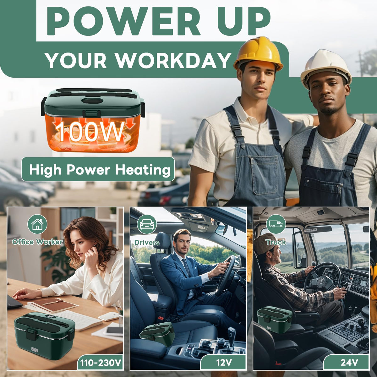 Dupasu Electric Lunch Box, Food Heated 12V 24V 110V Portable Food Warmer Heater For Car/Truck/Home, 100W Self Heating Box With 1