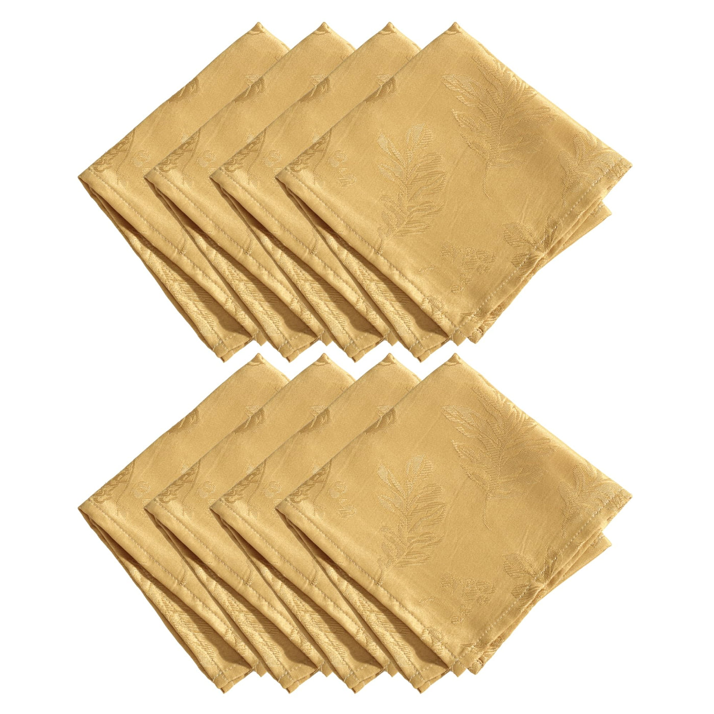 Elrene Home Fashions Elegant Woven Leaves Jacquard Damask Cloth Napkin Set, 17'' X 17'', Pack Of 8, Gold