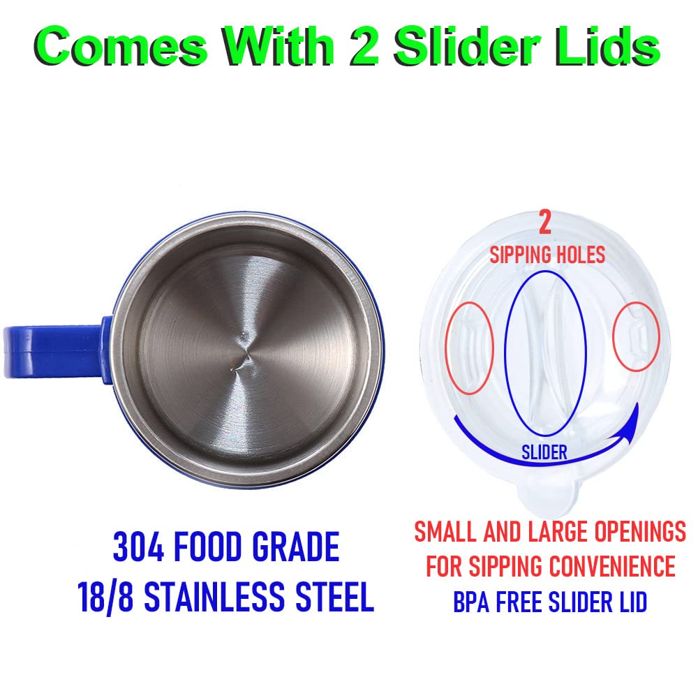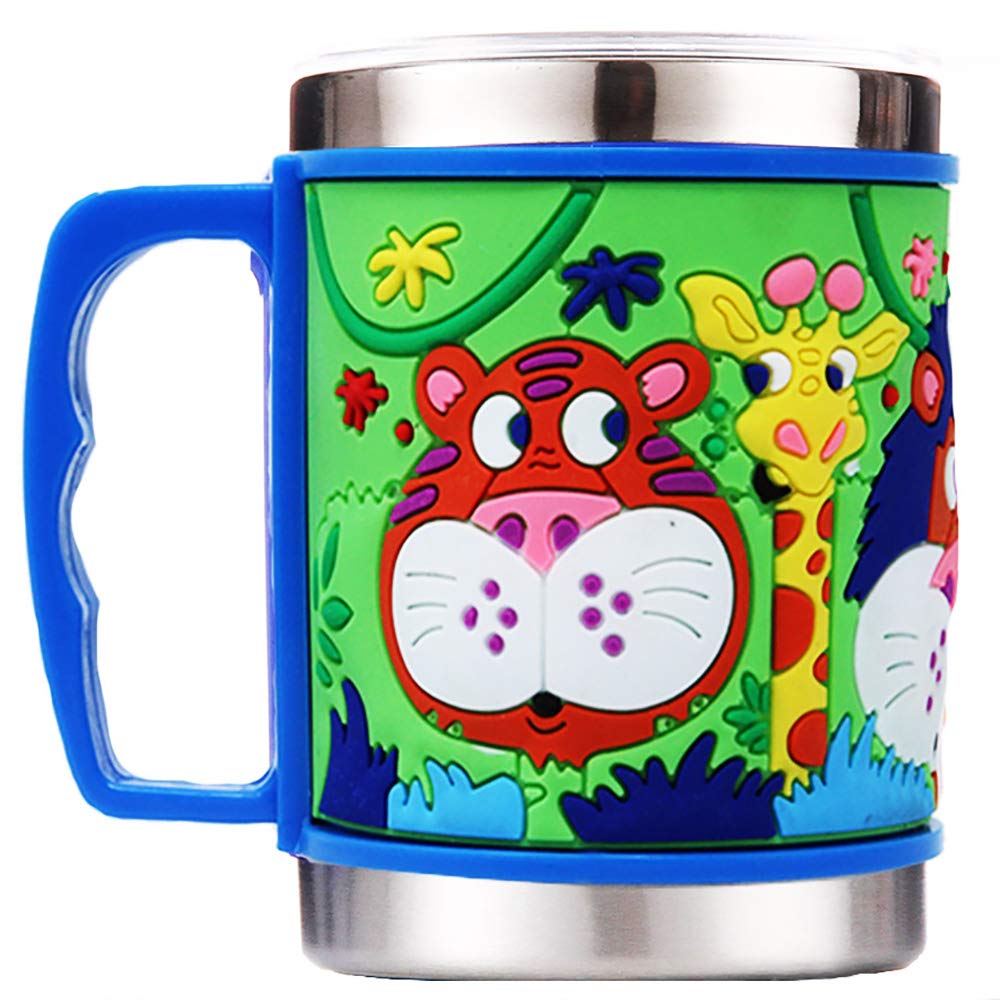 F-32 12 Oz Kids Stainless Steel Jungle Animals 3D Mug With 2 Pack Slider Closure Lids - Eco-Friendly - Bpa Free Signature Collec