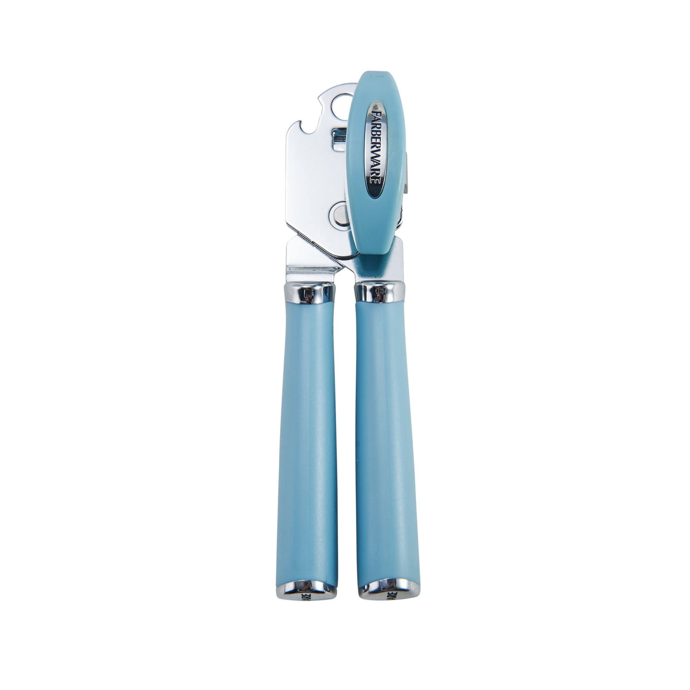 - Q: What color is the Farberware Professional Can Opener available in? A: This can opener is available in a light blue tone, adding a fun and stylish touch to your kitchen tools.