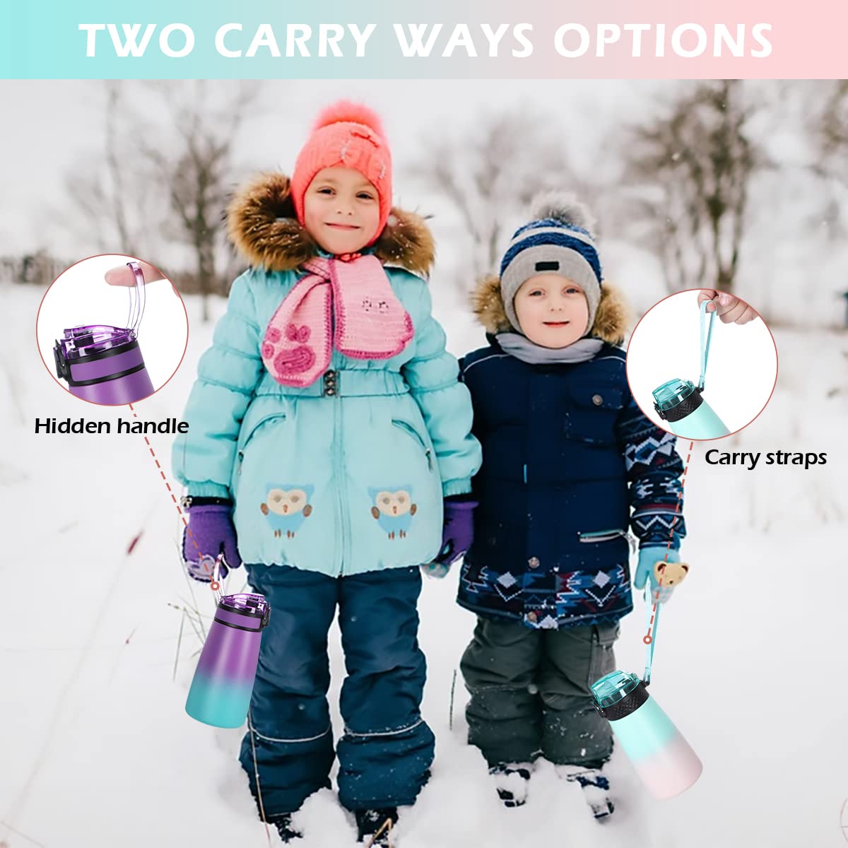 Goppus 12 Oz Kids Water Bottle With Straw Lid & Spout Lid Vacuum Insulated Stainless Steel Cup Double Wall Kids Metal Water Bott