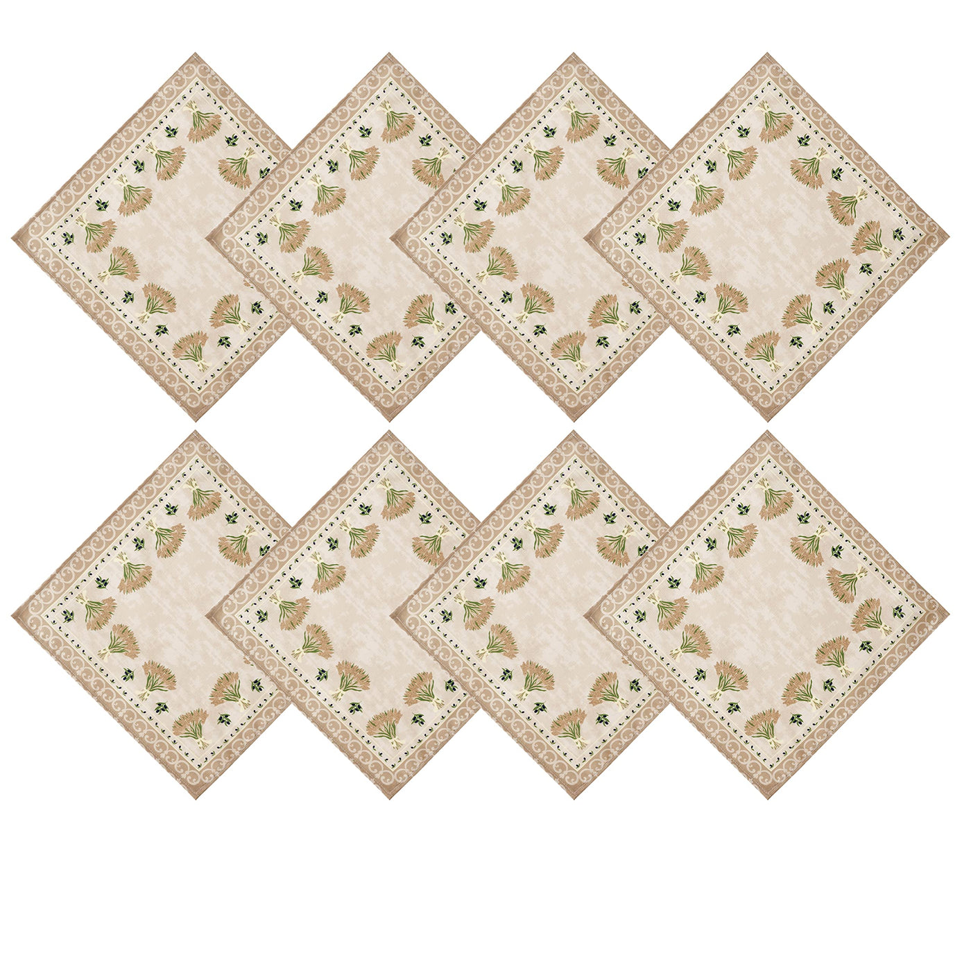Home Bargains Plus Square Fabric Napkins, Set Of 8 Napkins, Wheat And Olives Print, Indoor Outdoor Stain And Water Resistant Fab