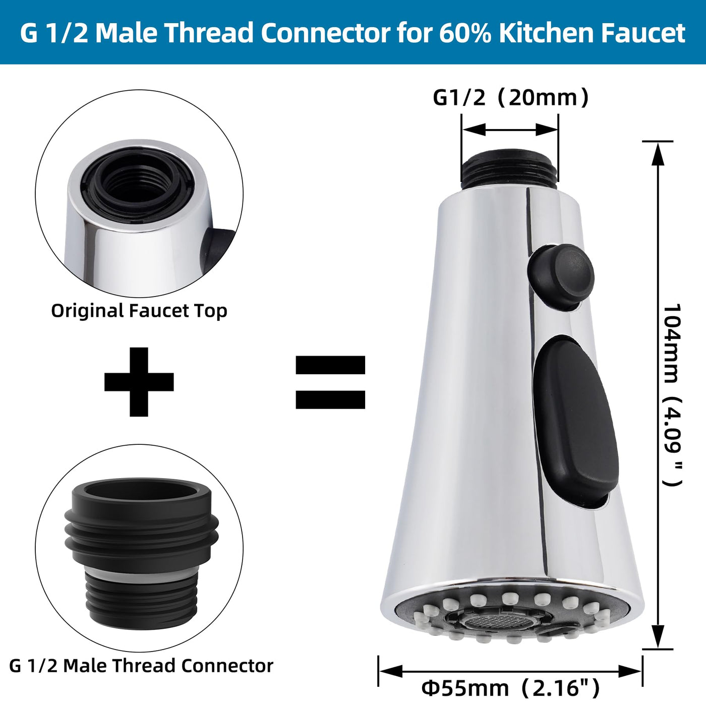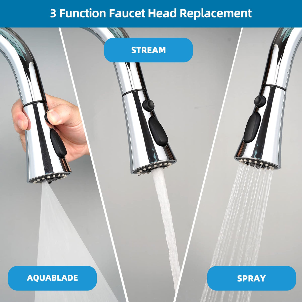 Hygie Rinse Universal Kitchen Faucet Head Replacement With 15 Adapter Kit Compatible With Kohler/Moen/Delta Faucet, 3 Function P