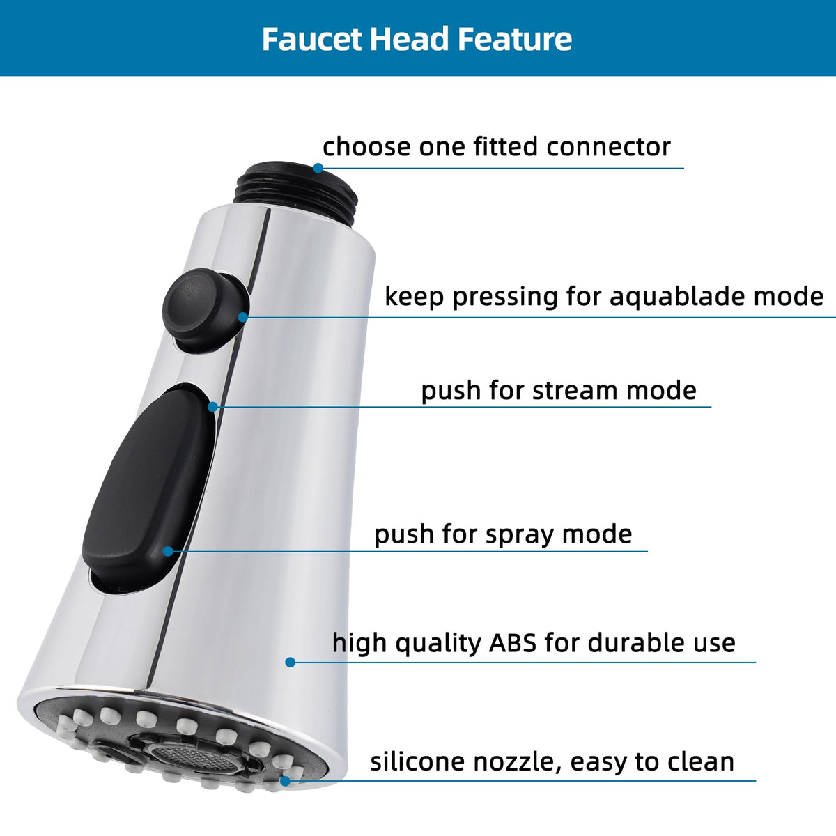 • Q: Does this sprayer head help in saving water? A: Yes, the design of this kitchen faucet sprayer head minimizes leaks, which can help save water and energy over time.
