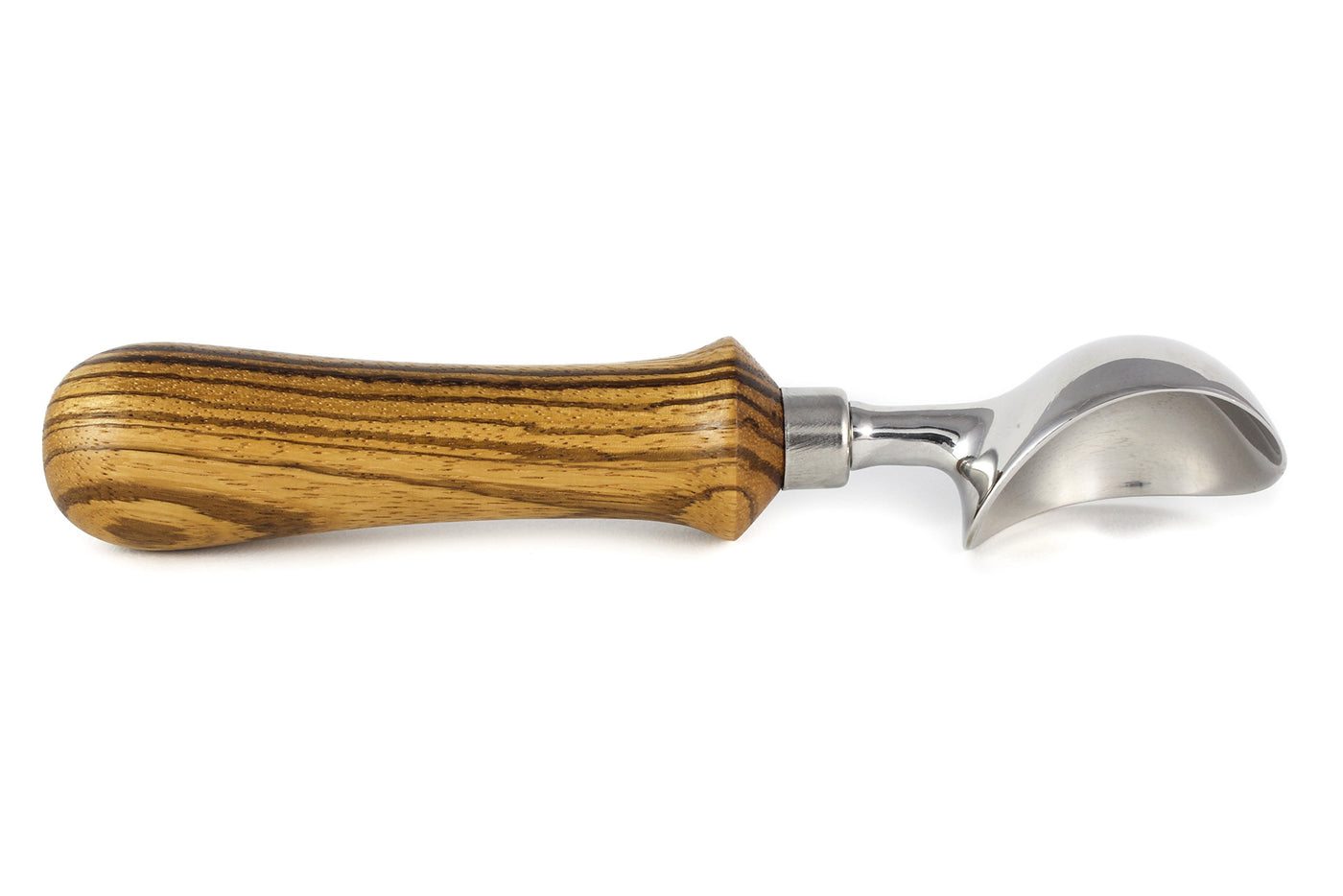 • Q: What materials can I use for the ice cream scoop blank? A: While the kit does not include a blank, it is compatible with various woods. The pictured blank is Zebrawood, which provides a beautiful finish.