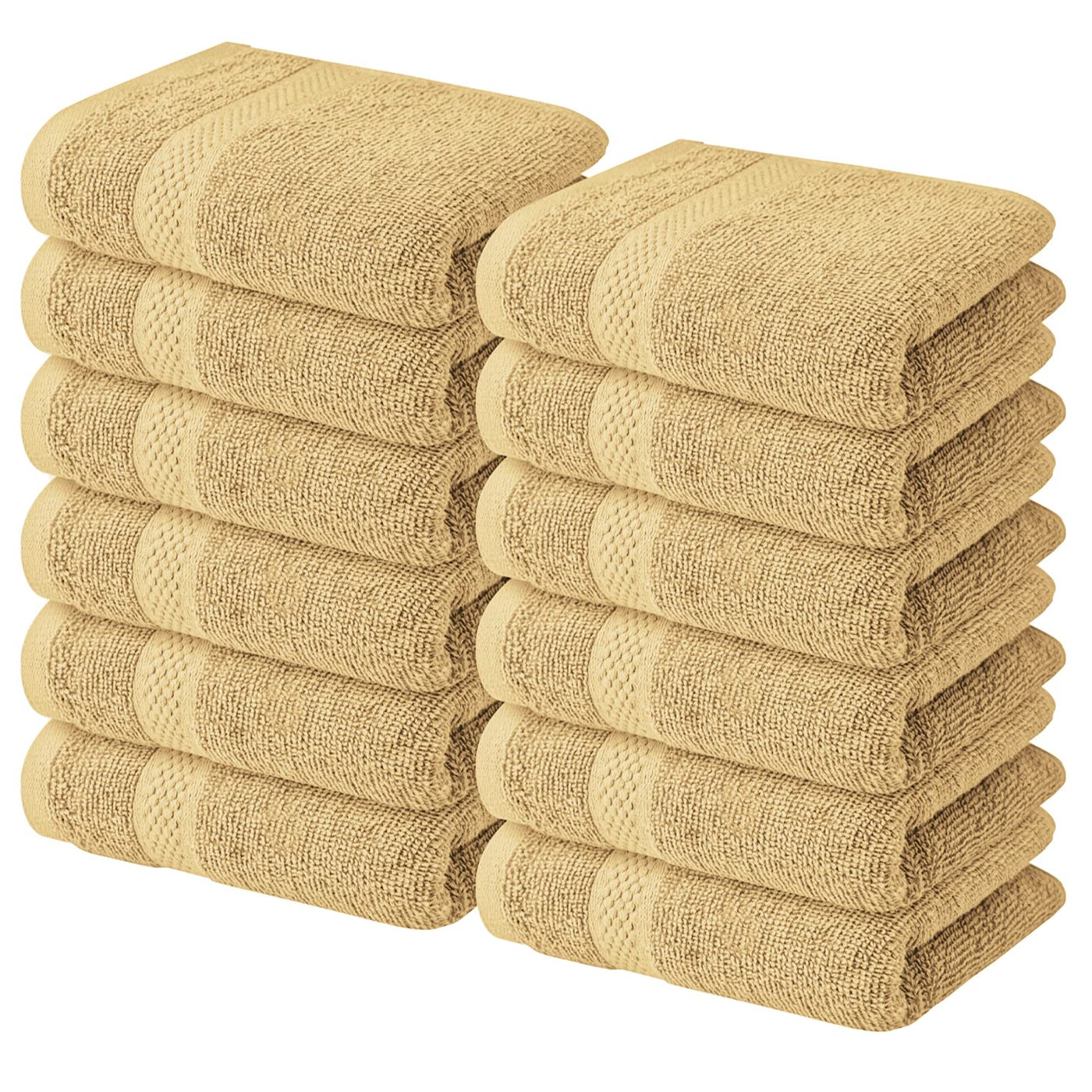 Infinitee Xclusives Premium Beige Washcloths Set - Pack Of 12, 13X13 Inches 100 Cotton Wash Cloths For Your Body And Face Towels