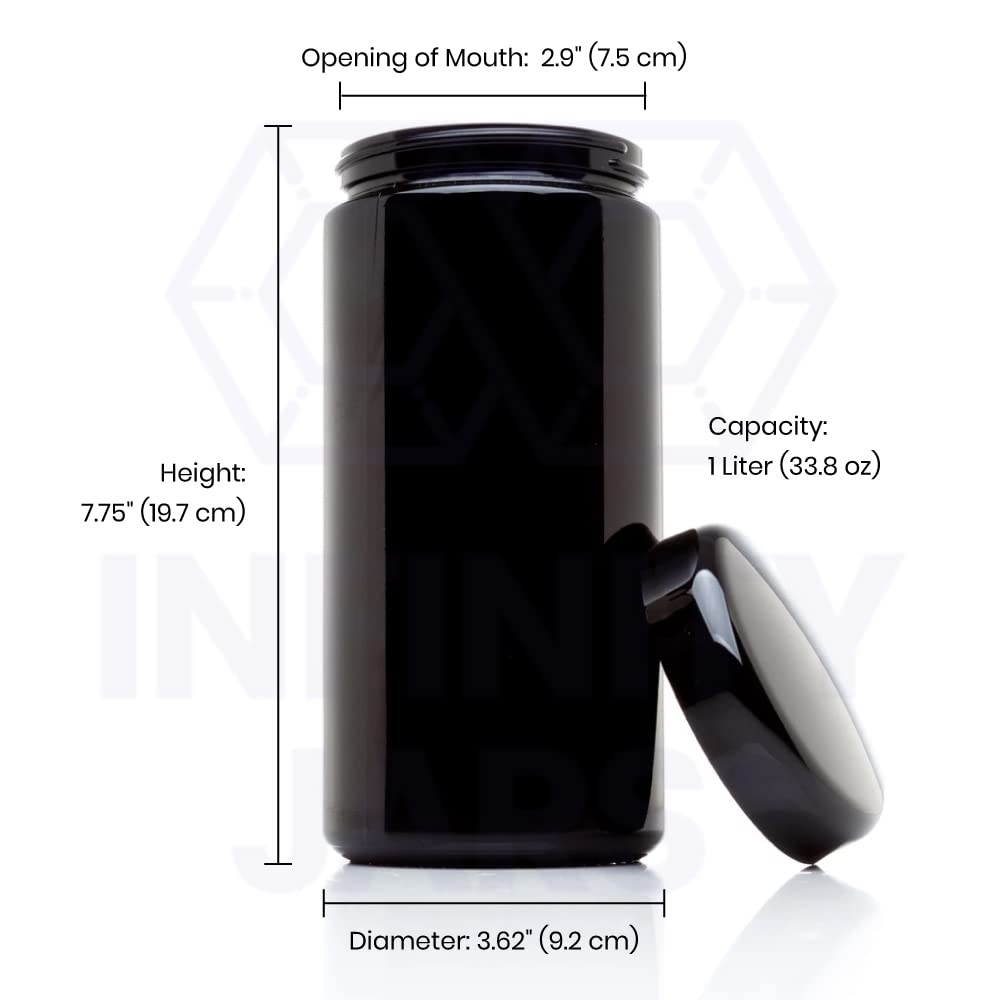 Infinity Jars 1 Liter (34 Fl Oz) 3-Pack Tall Extra Large Black Ultraviolet Glass Wide Mouth Screw Top Jar