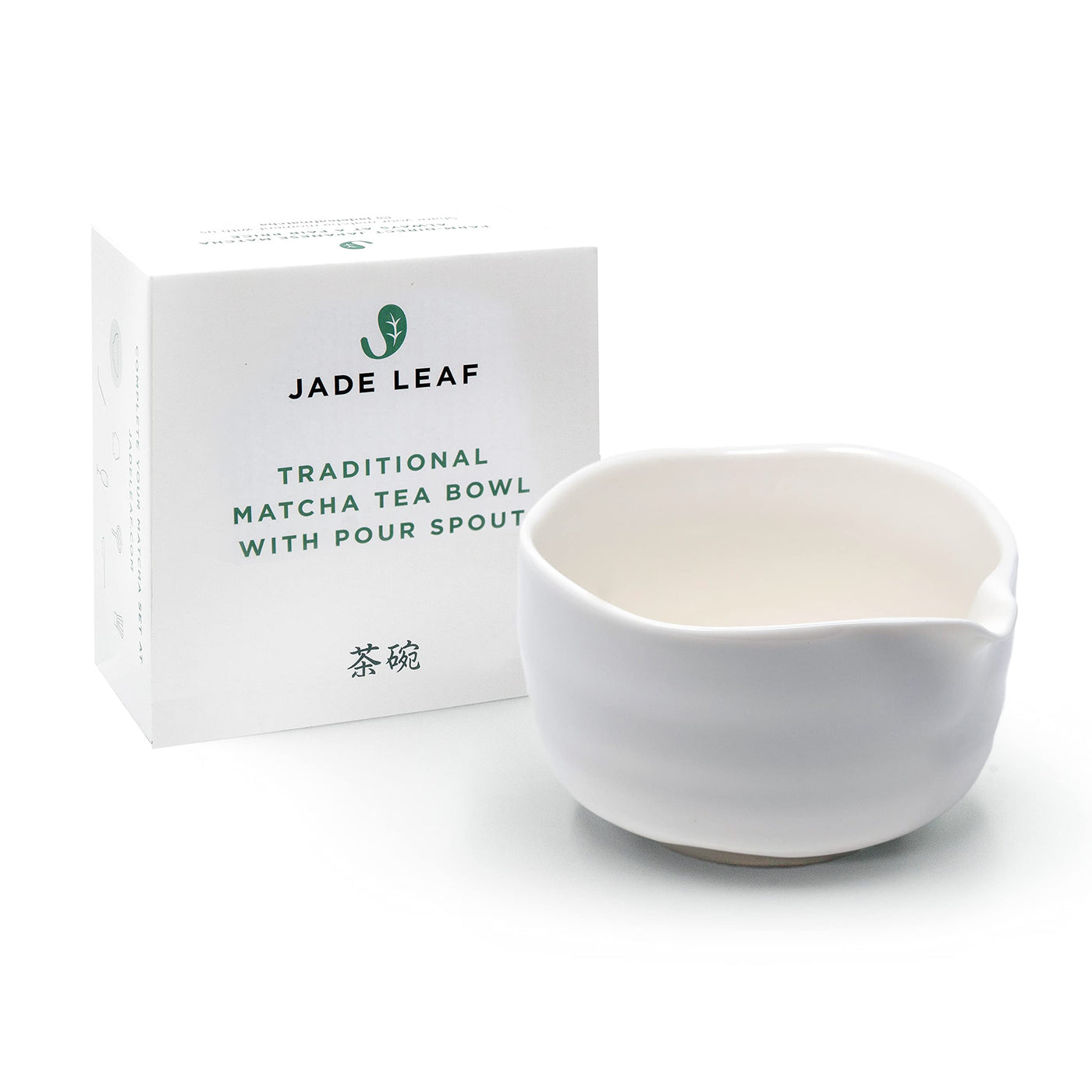 Jade Leaf Matcha Traditional Porcelain Tea Bowl With Pour Spout - Hand Made Porcelain With White Matte Glaze - For Perfectly Whi