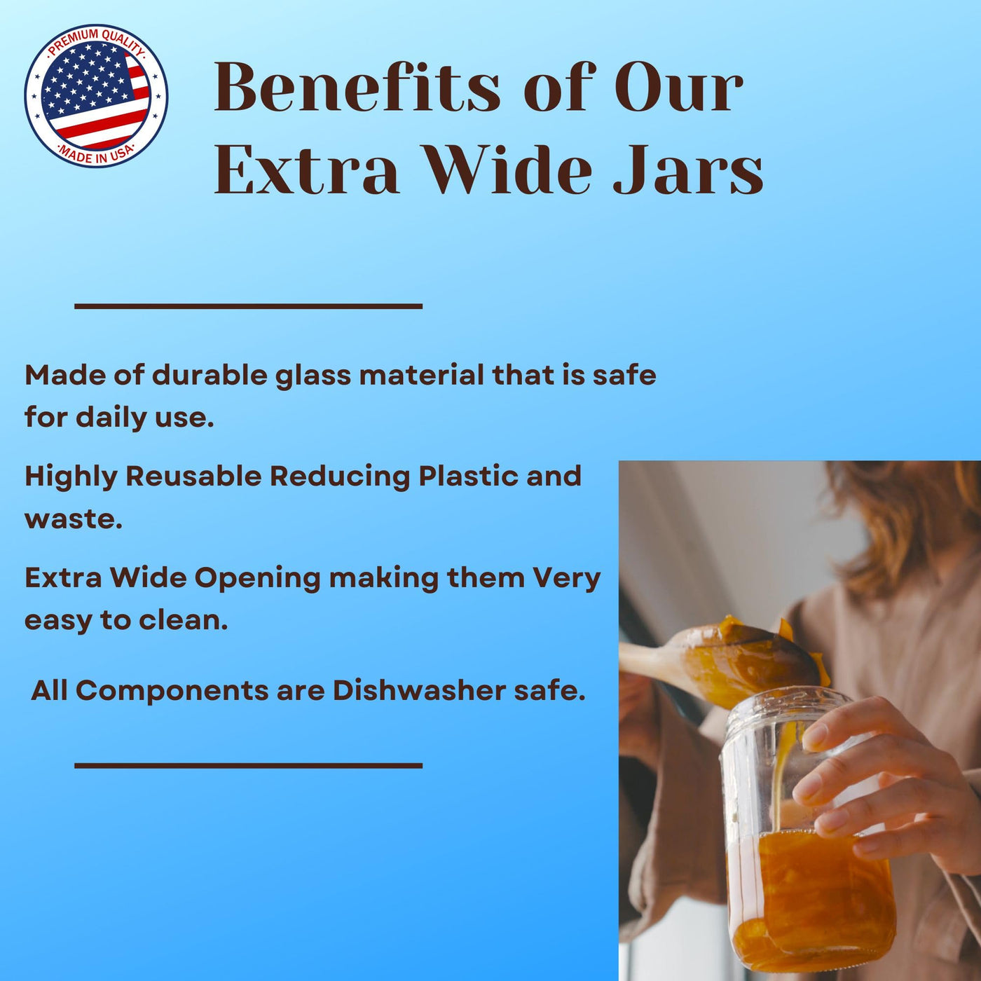 - Q: Where are the jars manufactured? A: The Jarming Collections Glass Extra Wide Mouth Jars are proudly made in the USA.
