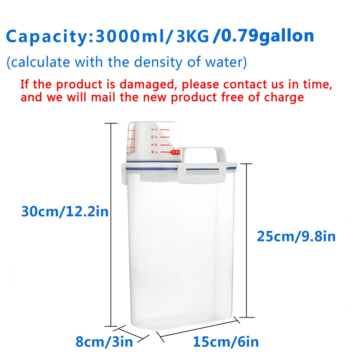 • Q: How does the measuring cup work with this container? A: The container is designed for easy pouring, allowing accurate measurements using the integrated measuring cup.