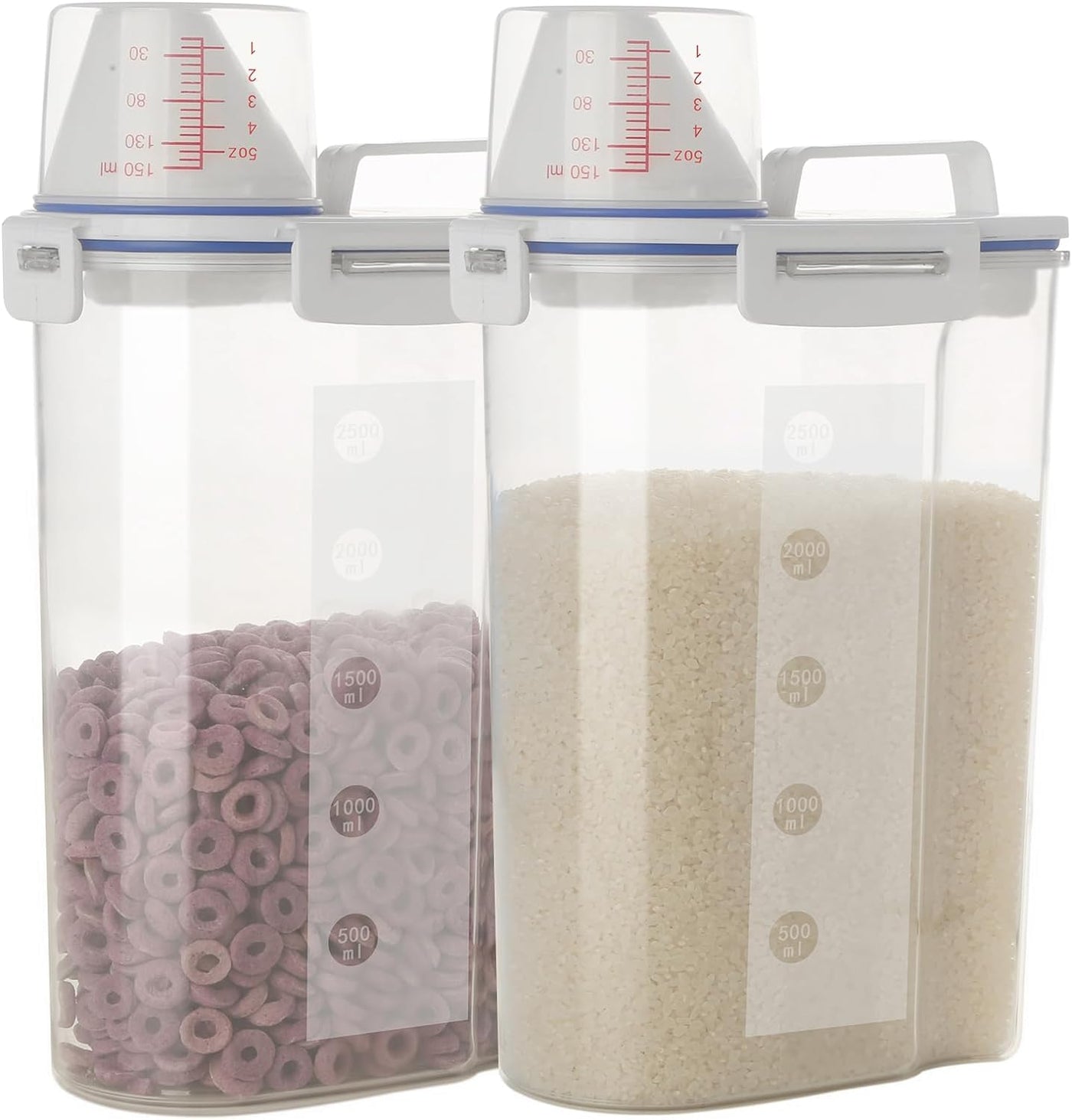 Jioko 2 Pcs 5.5 Lb Rice Storage Container, Airtight Cereal Flour Dispenser With Pouring Spout & Measuring Cup, Kitchen Plastic C