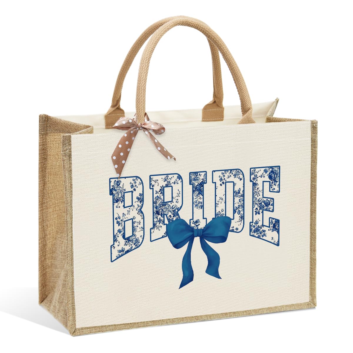 KongMoTree Bride Bag, Bride Gifts, Bridal Shower Gifts, Blue Bows Canvas Tote Bag Wedding Bachelorette Bride Gift Bridesmaid Tot