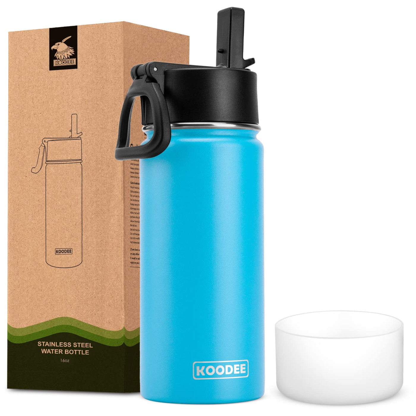 Koodee Water Bottle With Straw 16 Oz Stainless Steel Double Wall Vacuum Insulated Wide Mouth Water Bottle Flask With Leakproof S