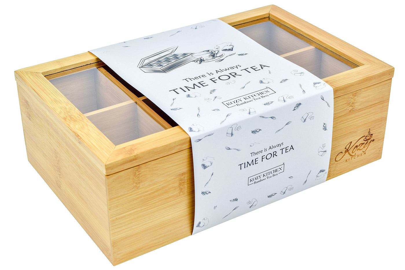- Q: What is the material of the Kozy Kitchen Tea Box? A: The Kozy Kitchen Tea Box is made from premium quality organic bamboo, known for its durability and sustainability.