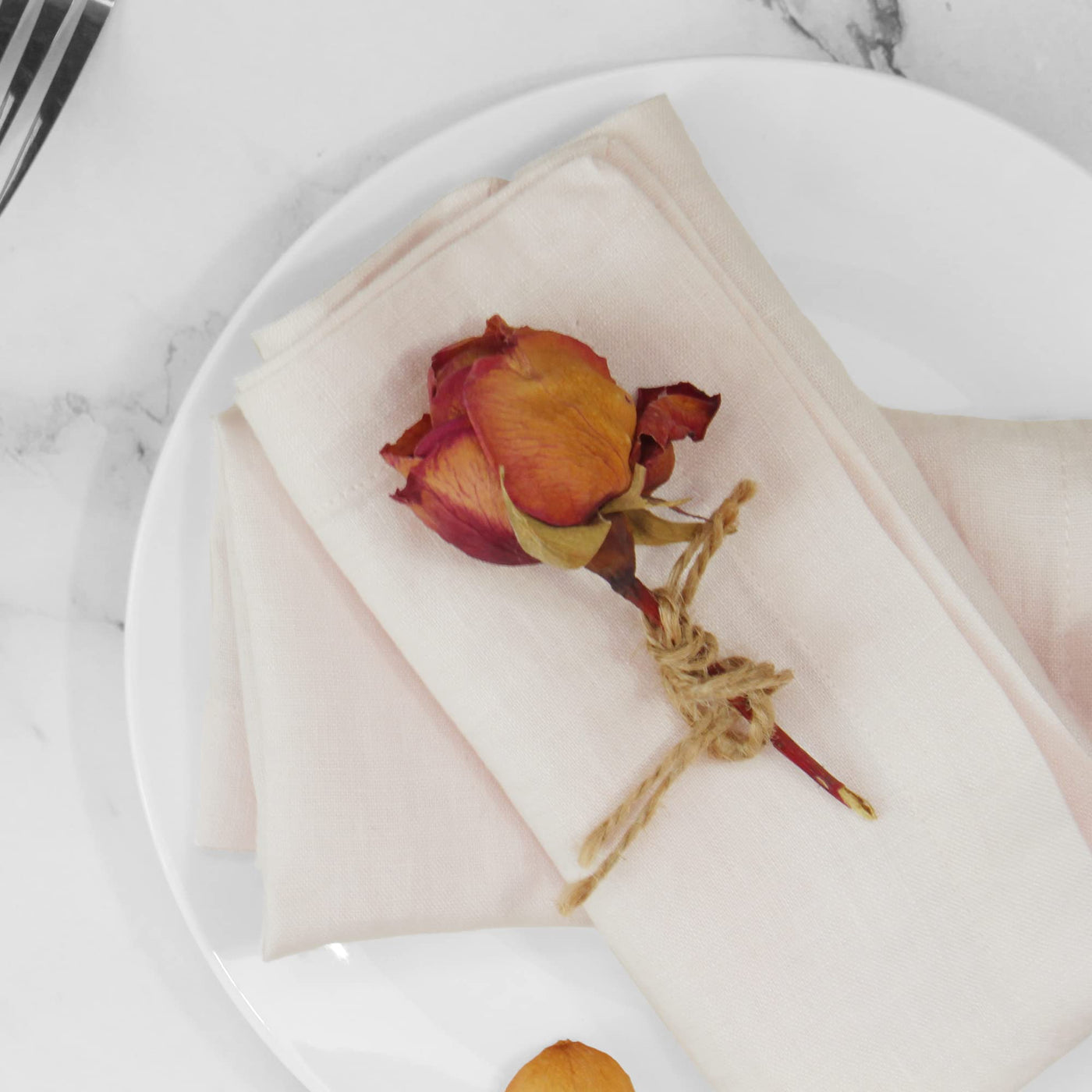 L Linen World 100% Linen Dinner Napkins 20x20Inch Set of 4 Valentines Napkins Soft and Durable Natural French Flax Cloth Napkins(Blush Pink)