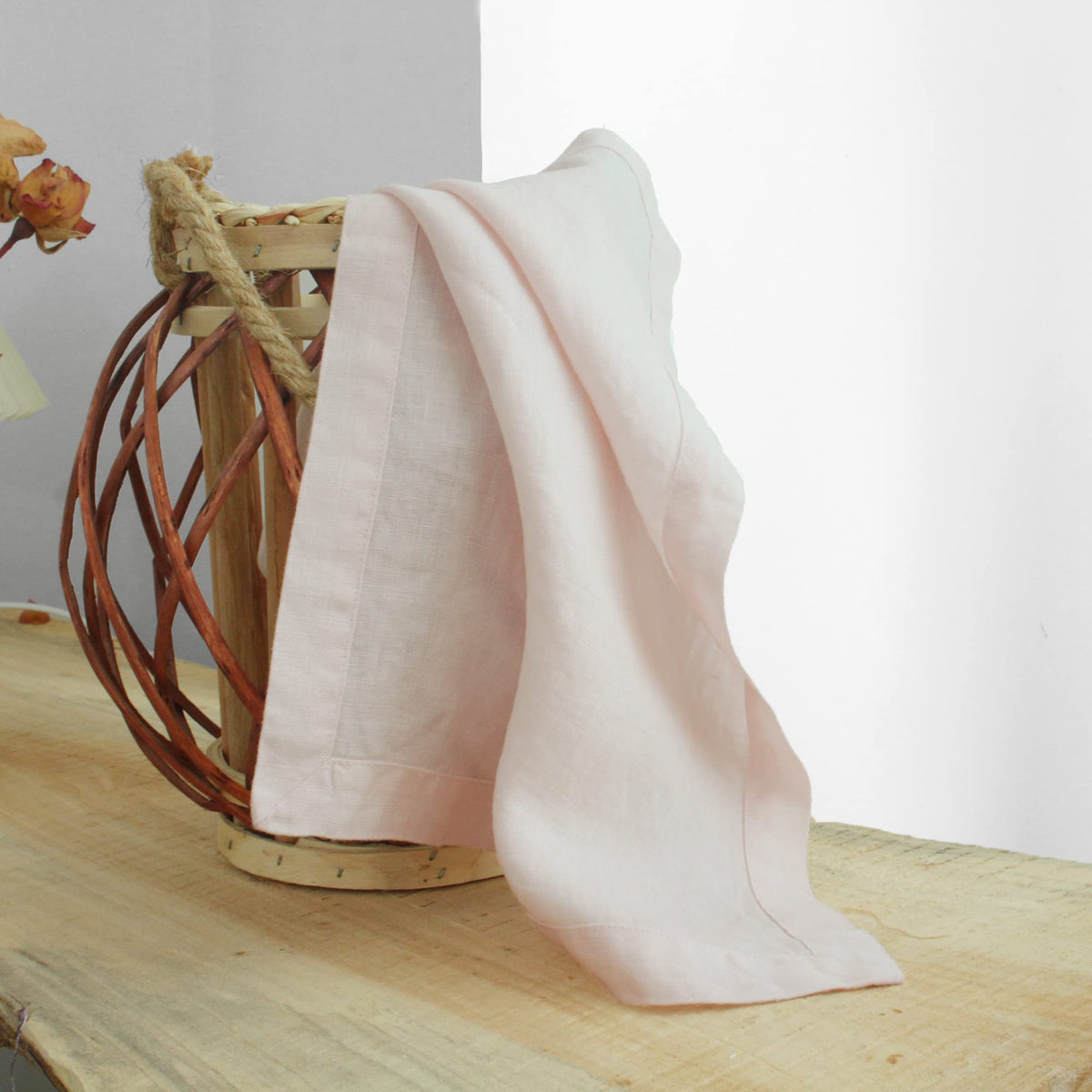 - Q: What colors are available for these napkins? A: The napkins are available in a blush pink color, which adds a soft and elegant touch to your table setting.